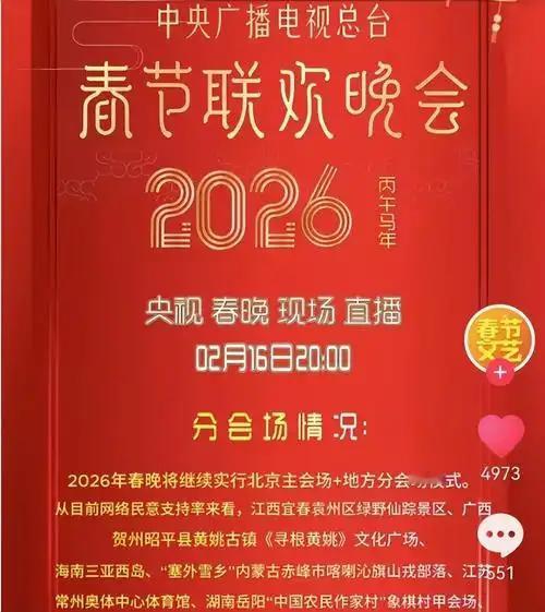 2026年央视春晚彩排正式拉开帷幕,四大分会场齐发力,科技与传统文化碰撞出全新火花。 2026年央视春晚的筹备工作正如火如荼地展开,从1月4日起,主创团队便进入了密集彩排阶段。此次春晚不仅在主会场央视一号演播厅进行录制,还在哈尔滨、义乌、合肥、宜宾设立分会场,实现多地联动。其中,哈尔滨分会场将打造冰雪舞台,义乌分会场则展示丝路光影,合肥分会场融合量子科技与黄梅戏,宜宾分会场则呈现竹编非遗与酿酒文化的独特魅力。本次春晚特别注重技术创新,运用VR、裸眼3D、超高清投影等高科技手段,结合分会场的无人机、AR等黑科技,力求为观众带来前所未有的视觉盛宴。此外,春晚还注重节目的多样性与创新性,语言类节目打磨新梗,舞蹈类节目延续古典质感,非遗文化与现代科技的结合更是亮点纷呈。随着彩排的推进,春晚团队将继续完善每个节目,力求为观众献上一场精彩的视听大餐。 春晚彩排 春晚四分会场 春晚选址 春晚时间安排 春晚节目设置