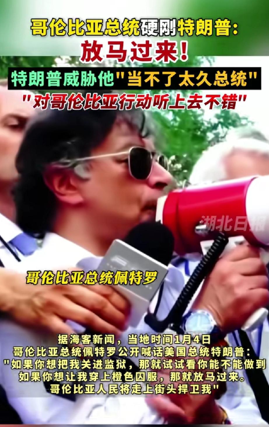 出大事了,哥伦比亚总统佩特罗硬刚特朗普,对特朗普喊话:你尽管放马过来吧。在此之前,马杜罗也曾对特朗普喊话,来抓我呀!最终,马杜罗在2026年实现了他的新年愿望。