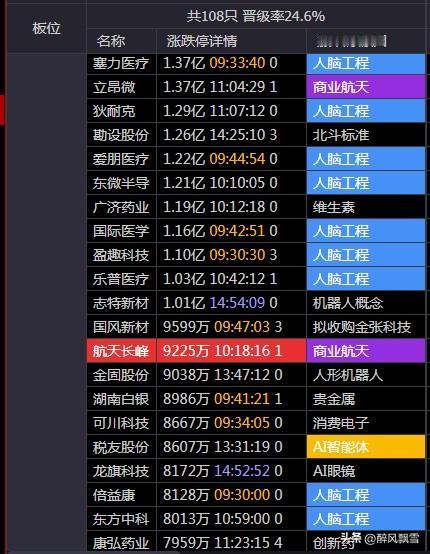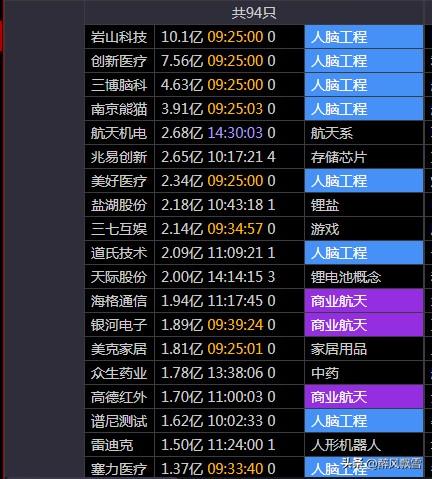 1月5日主线 根据概念涨停数量。 脑机接口需要跟踪持续性,今天仅是昨天消息面催化,正常明天前排继续上板。 1月5日A股呈现三大热点并行格局:人脑工程凭马斯克量产消息成最强,28家涨停、资金净流入78亿; 商业航天梯队相对完整但资金净流出,首板及1进2表现强势,高切低! 次主线AI智能体作为跨年题材占据一席之地,涨停15家、资金流入50.4亿,产业落地加速下具有潜力。 短线聚焦各板块前排或底部挖掘,警惕高位分歧与资金分流。