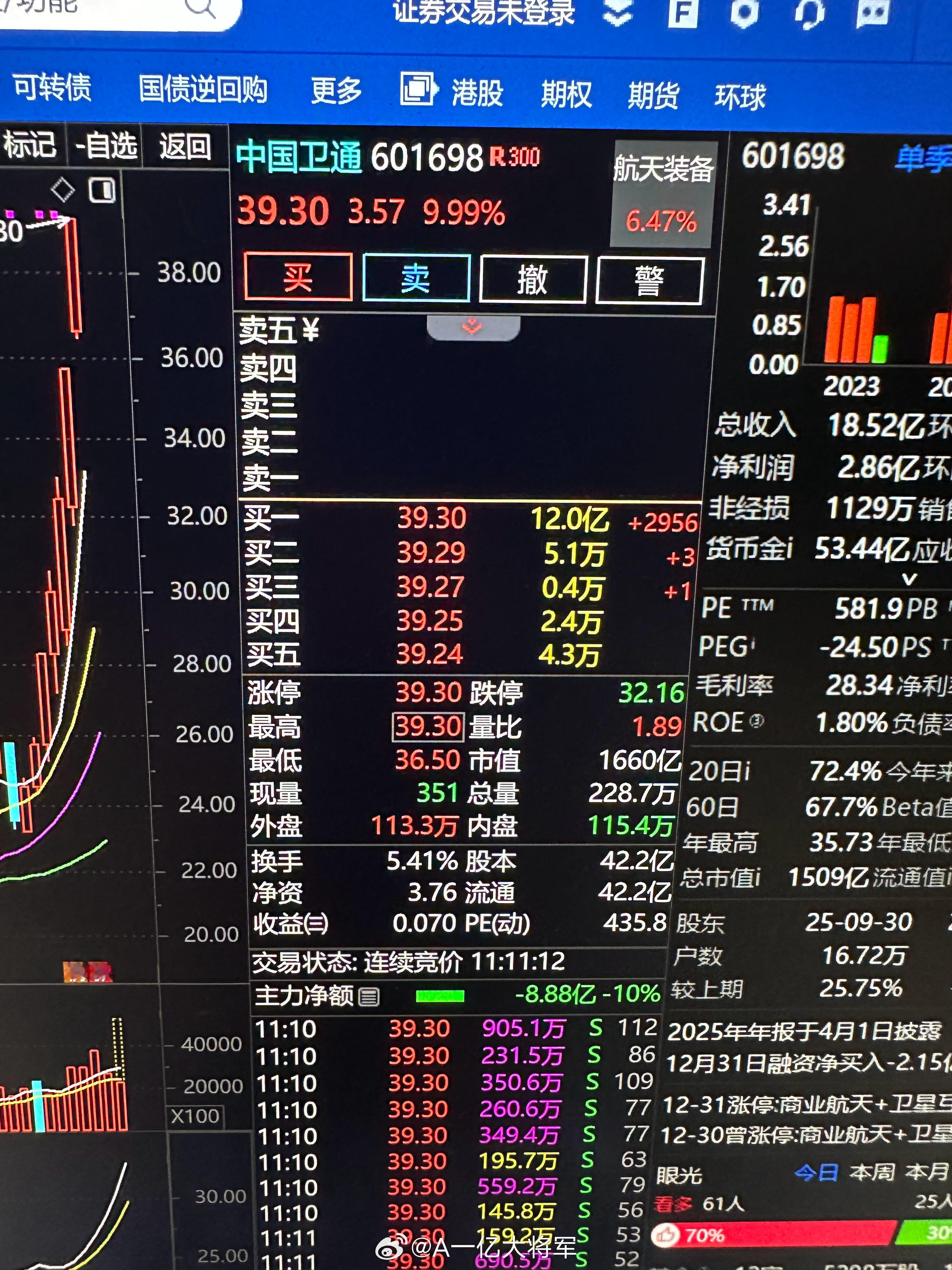 $中国卫通sh601698$涨停了$中国卫星sh600118$跟进脚步2