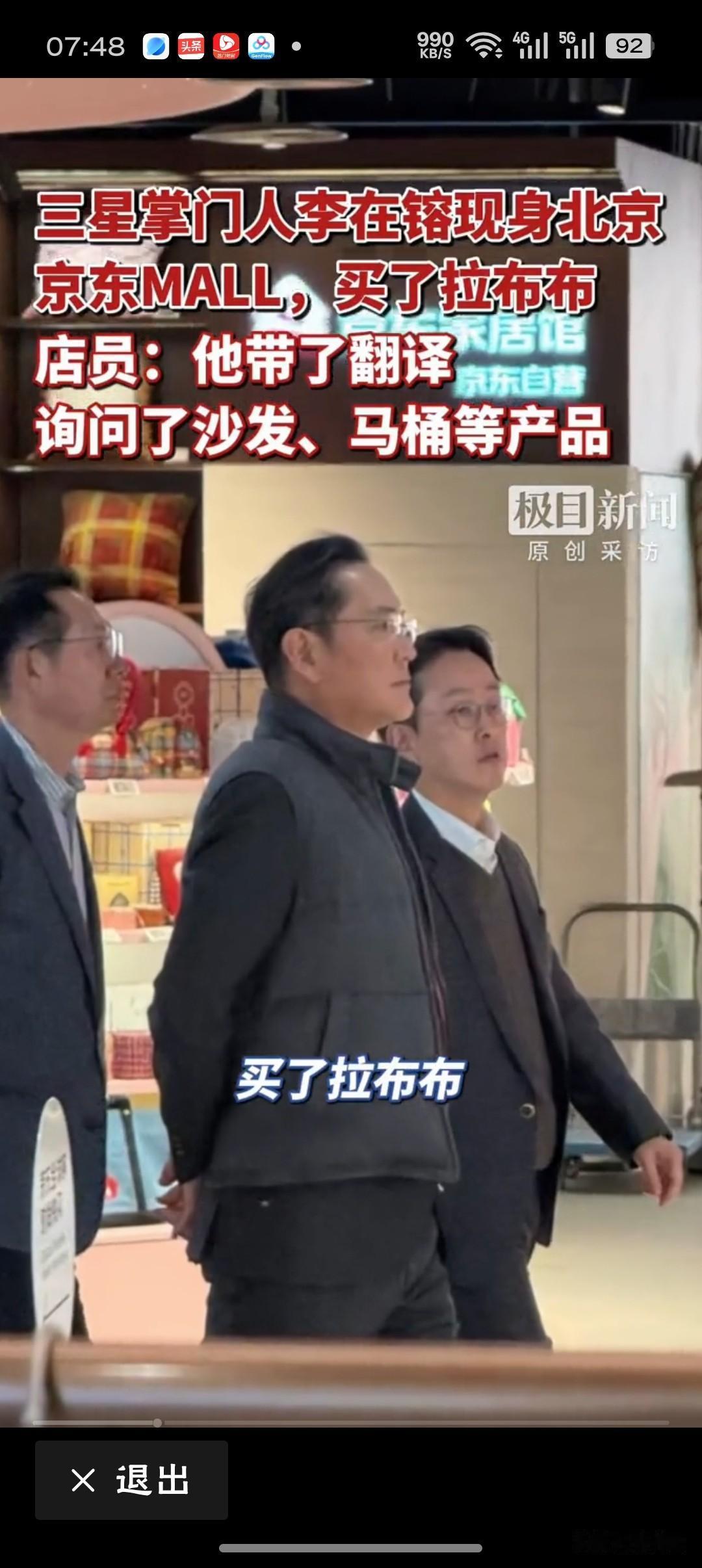 三星掌门人逛北京商场买了拉布布“三星掌门人逛北京商场买拉布布,原来大佬也爱潮玩,这波跨界联动太接地气了!”