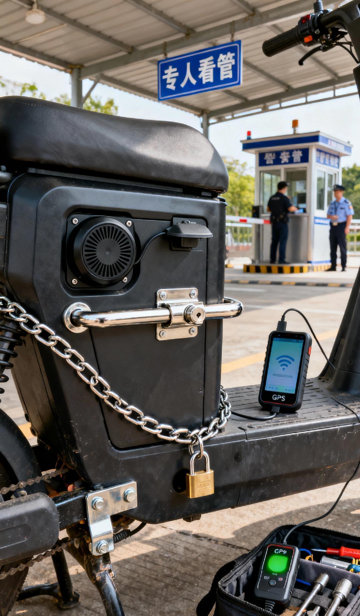 金彭电动三轮车电池怎么防盗优先用原装防盗报警器,搭配不锈钢U型锁+链条锁双重固定电池盒,可焊接锁片增强防拆性。停放选监控覆盖或有人看管区域,避开偏僻处。隐蔽安装GPS定位器,异常移动可手机追踪。定期检查锁具和报警器灵敏度,不给小偷可乘之机,全方位守护电池安全~ 电动车三轮车锁 三轮车防盗