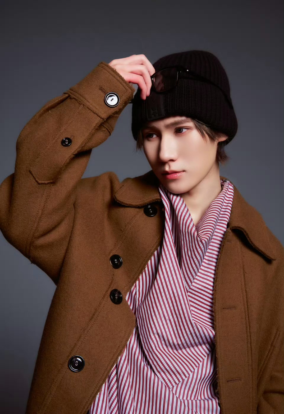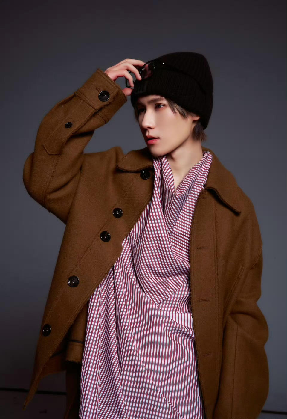 张真源inAMIParis📷🍂棕色廓型套装,内搭粉色条纹,冬日男