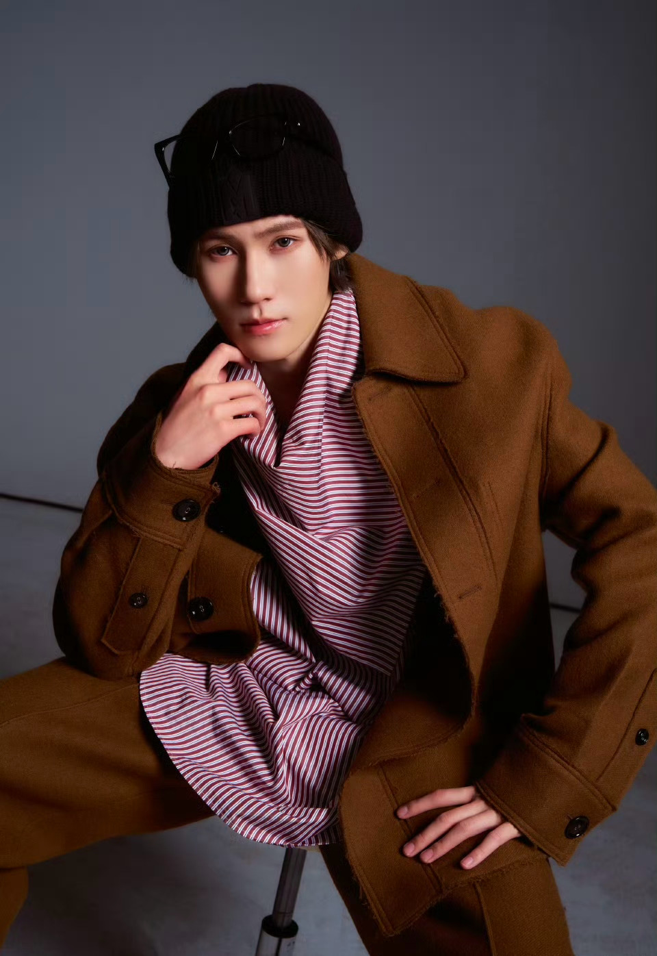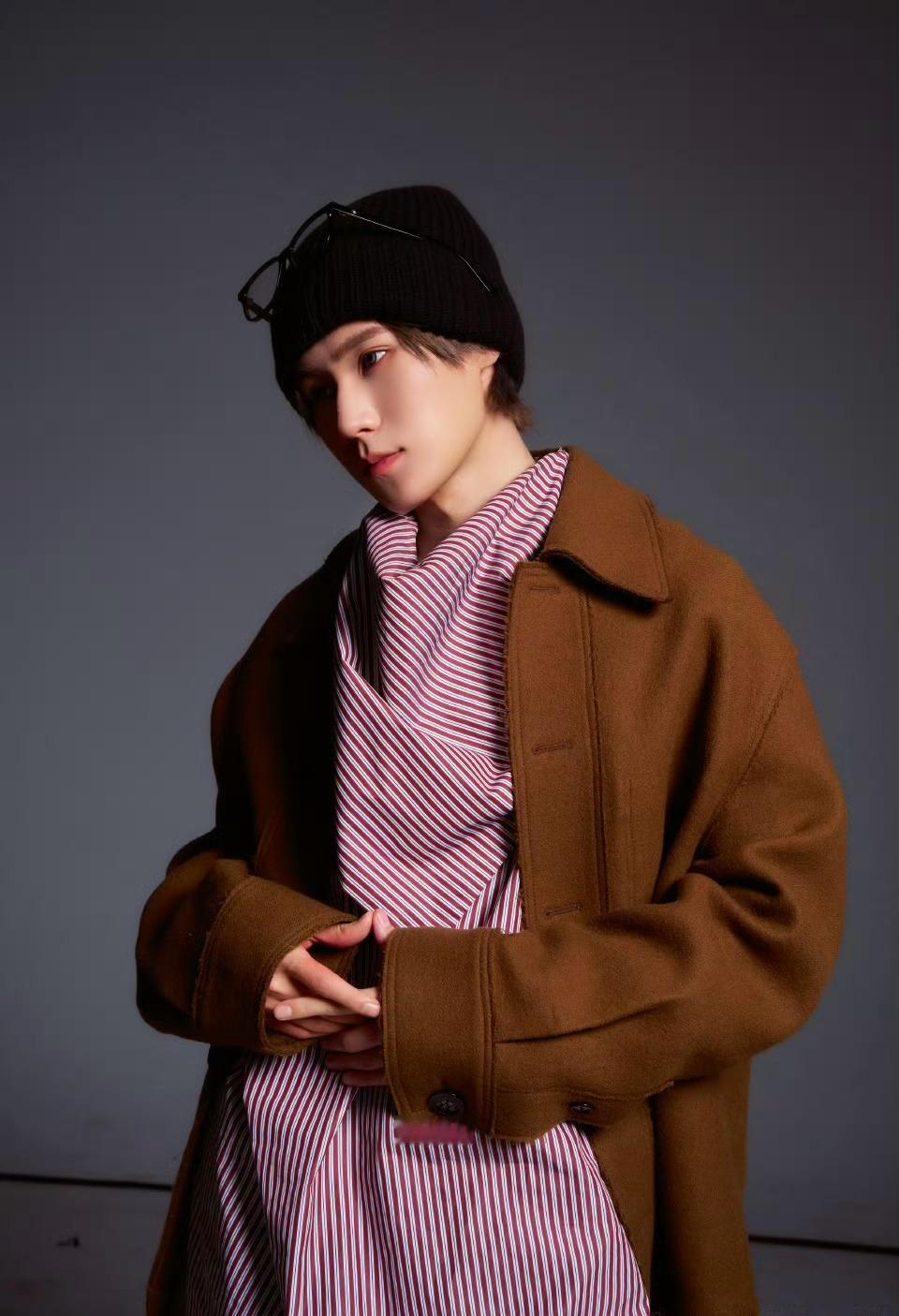 张真源 in AMI Paris 📷🍂 棕色廓型套装,内搭粉色条纹,冬日男友新穿搭ootd~