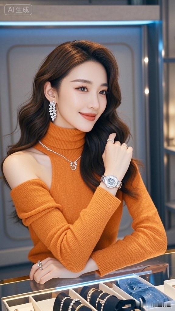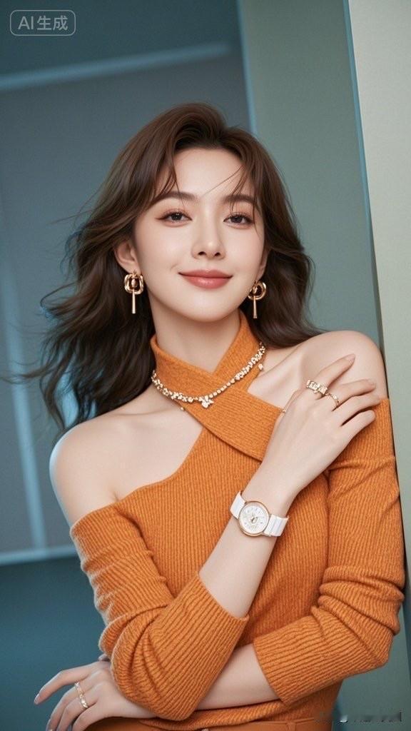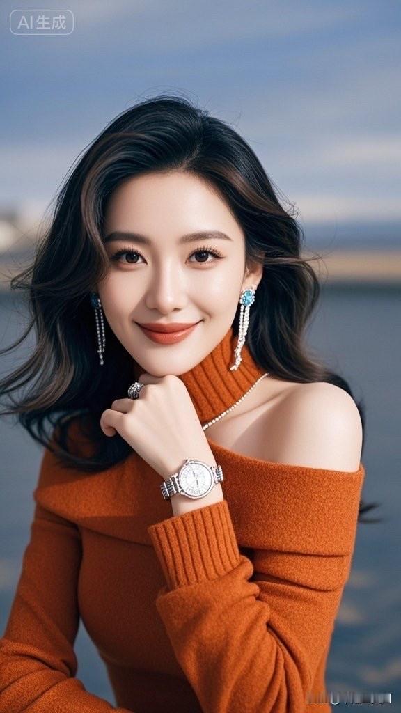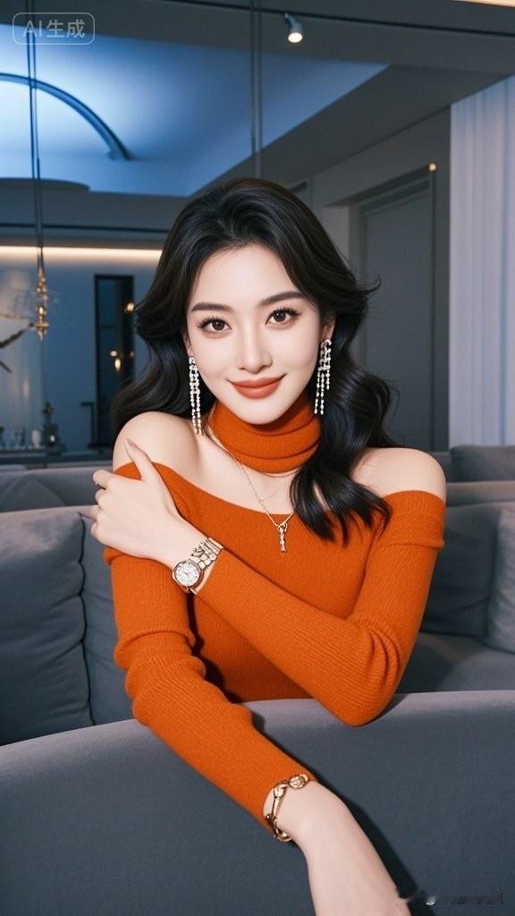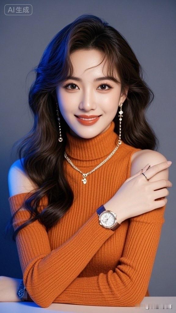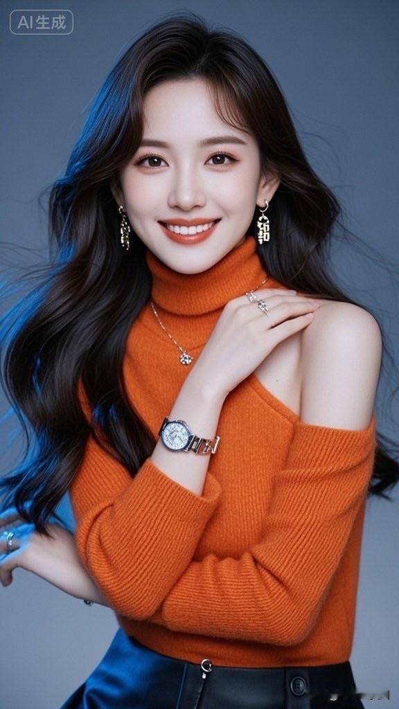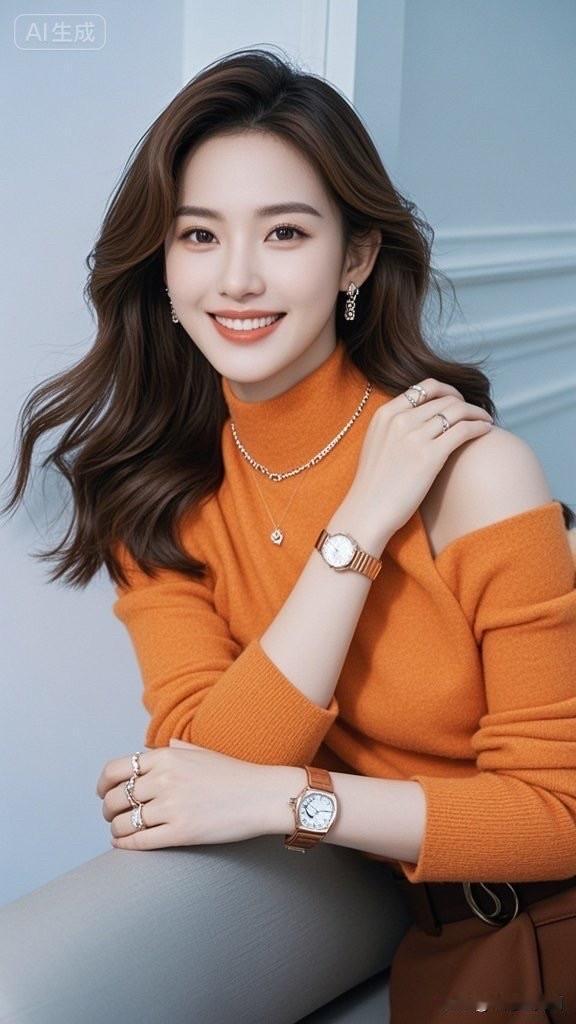 元气满满的橙色毛衣,甜美笑容,元气少女!😊✨
