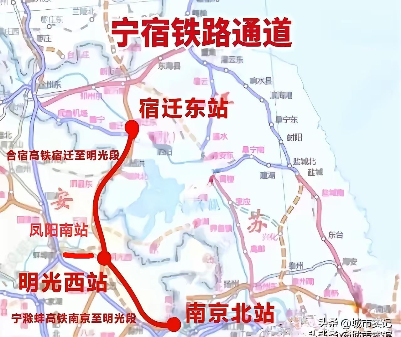 一点不夸张,宿迁到南京总共有四条线。目前通车的, 一线:宿迁连镇,到南京也是最远的。361km。 二线:还有一个宁淮线,也是快通车的。 三线是宁宿,现在还没动静。 四线宿迁借合新,明光西,到南京。宿迁