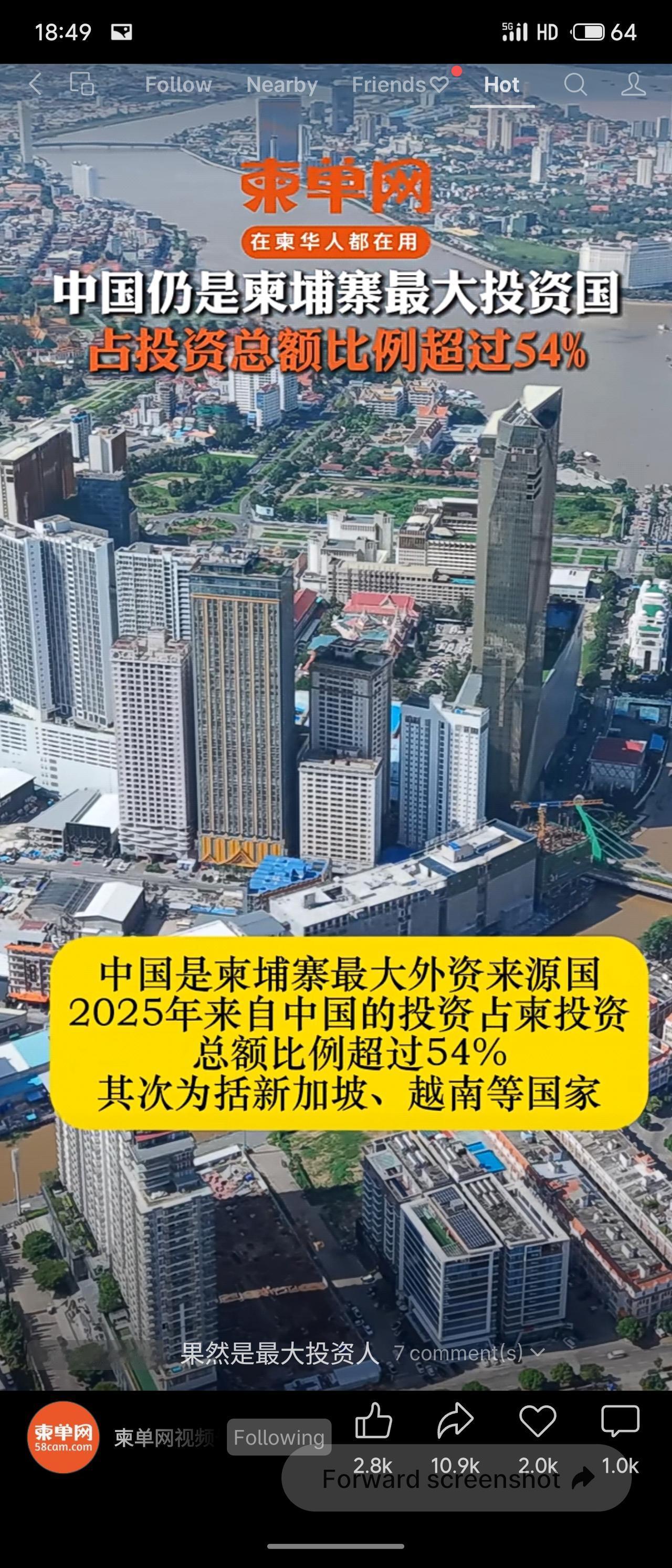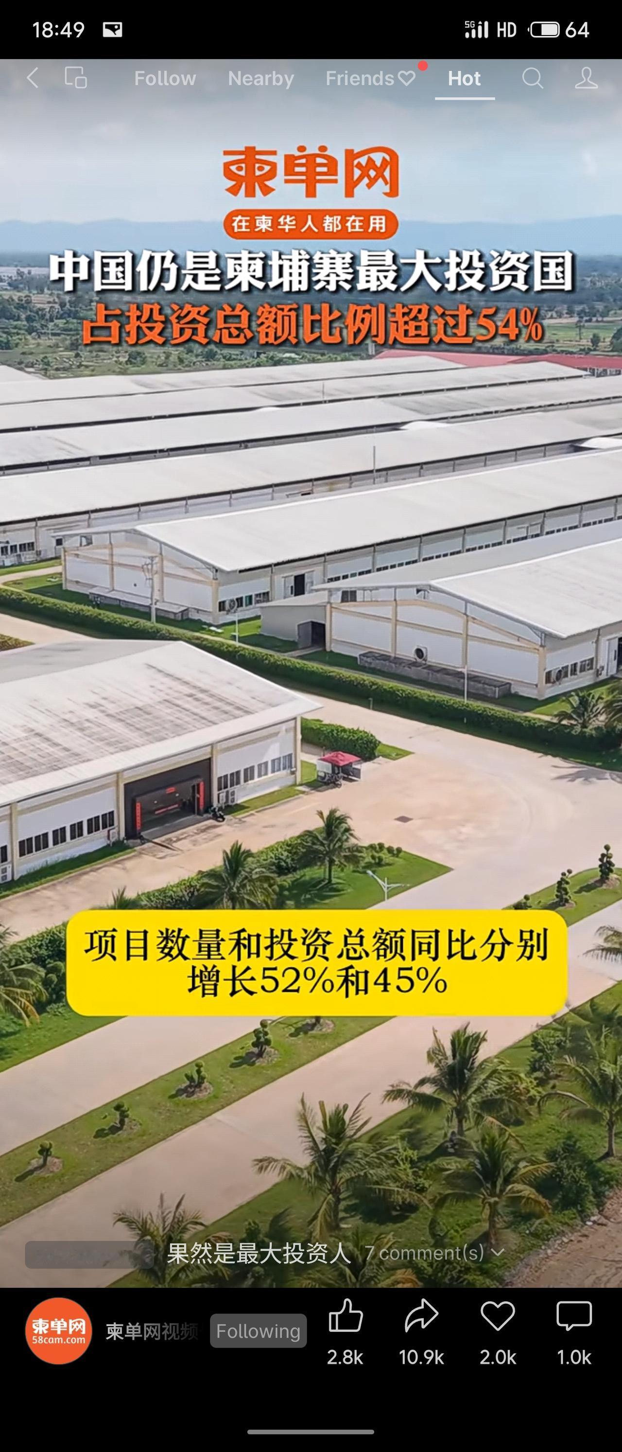 根据柬埔寨发展理事会报告,2025年共批准投资项目630个,协议投资总额达100亿美元,项目数量和投资总额同比分别增长52%和45%。中国仍是柬埔寨最大外资来源国,占投资总额比例超过54%,其次为新加坡、越南等国。🇰🇭🤝🇨🇳