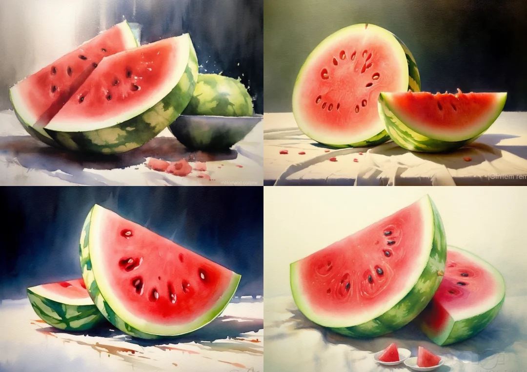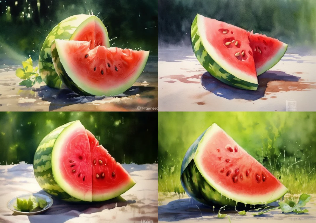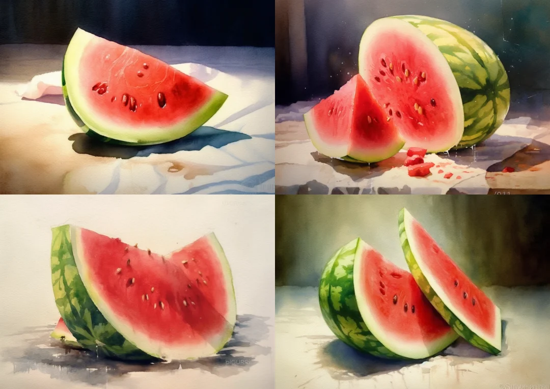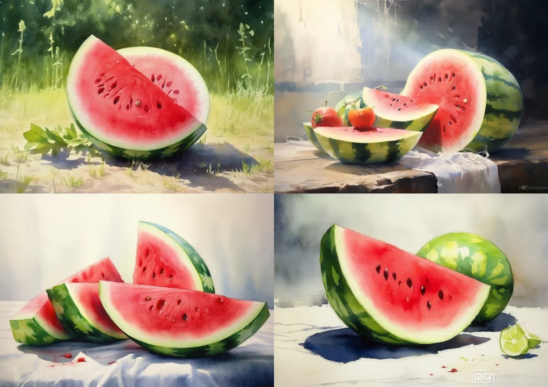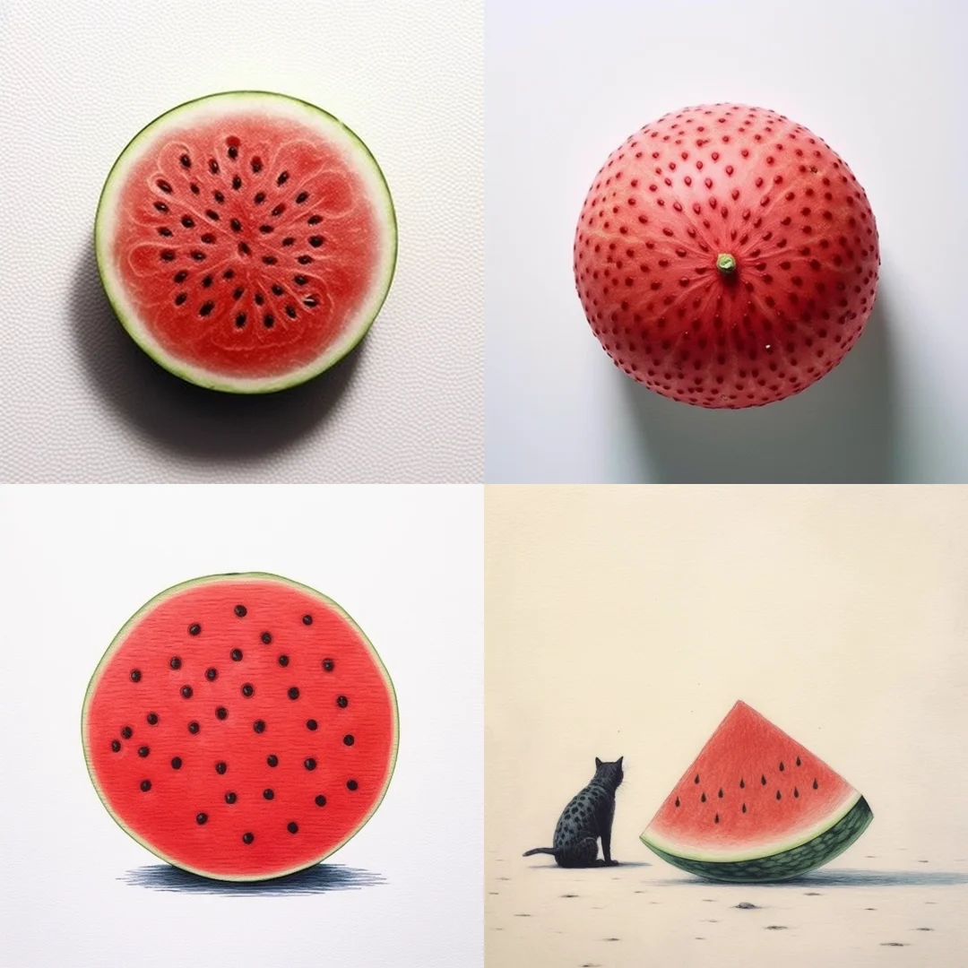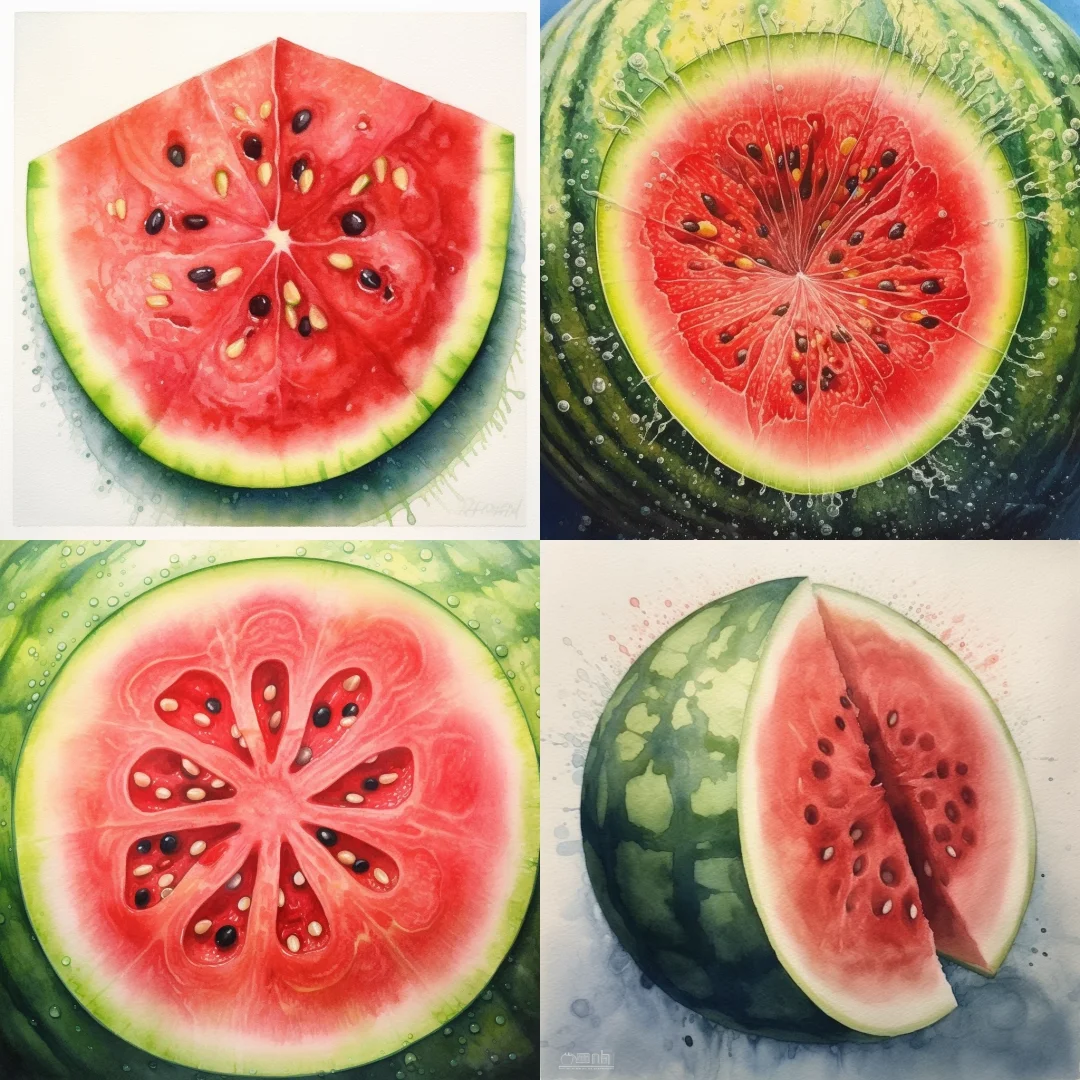 本来以为西瓜画出来应该挺好看的吧,结果……也不能说它不好看吧,就是……好好的西瓜你别浪费啊 多刷刷才勉强挑出正常一点的(最后四图)