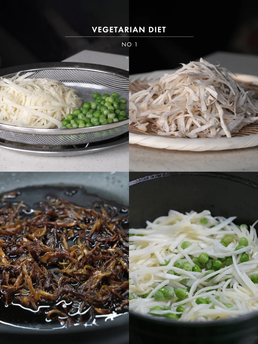 •茭白去皮切丝,下锅稍稍汆烫一下沥干(茭白的草酸比较高),青豆也同样焯水沥干。