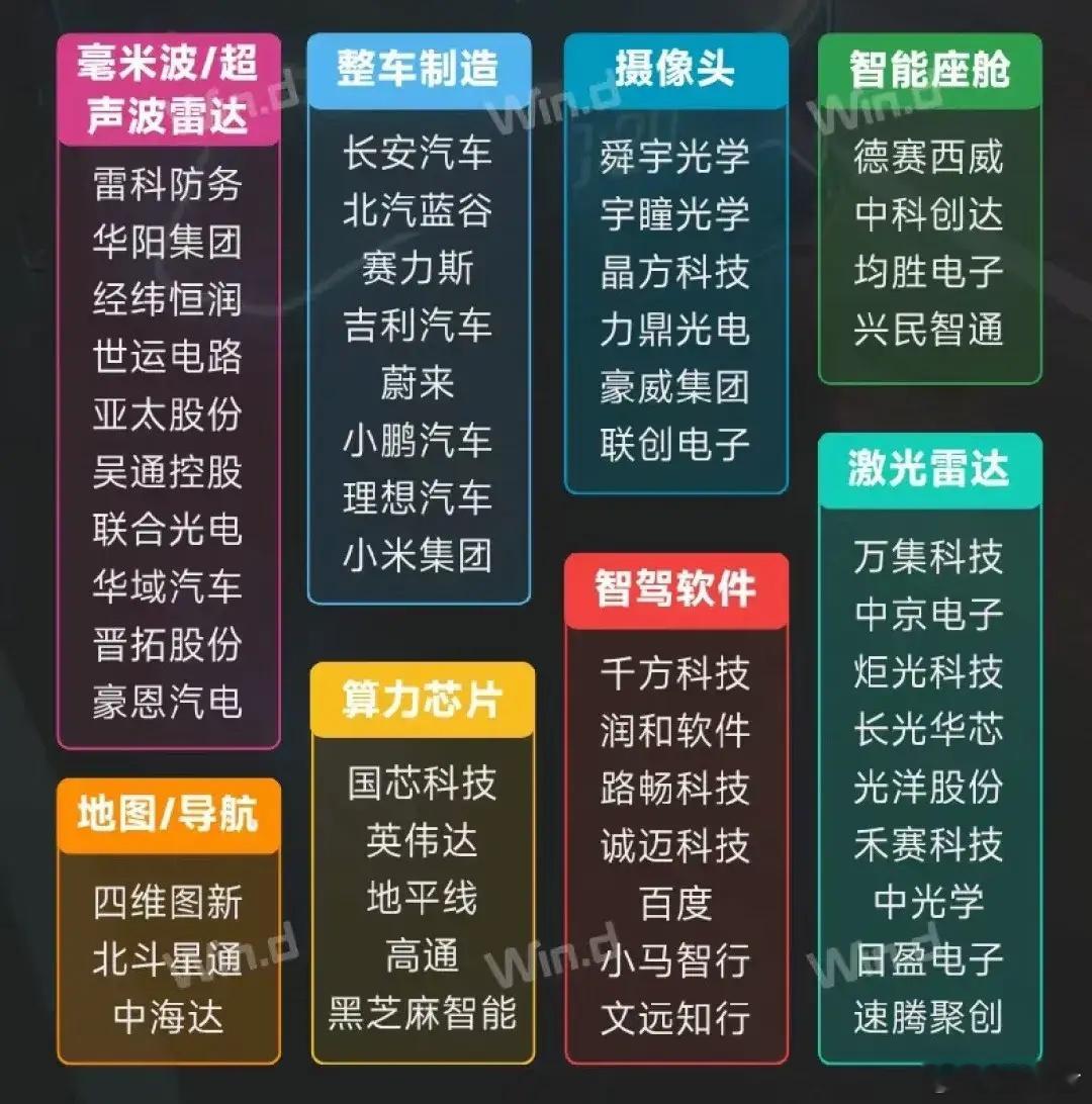 无人驾驶1.正式公布了我国首批L3级有条件自动驾驶车型准入许可名单2.英伟达黄仁勋宣布英伟达首款全栈自动驾驶汽车将于 2026 年第一季度在美上路测试,并认为其将是机器人产业发展史上规模最大的领域之一智能座舱:德赛西威、中科创达、兴民智通线控转向:浙江世宝、亚太股份、万朗磁塑毫米波雷达:雷科防务、豪恩汽电、联创电子激光雷达:永新光学、万集科技、神通科技智驾软件:路畅科技、千方科技、诚迈科技导航系统:北斗星通、中海达、四维图新特斯拉FSD:联创电子、宇瞳光学、世运电路