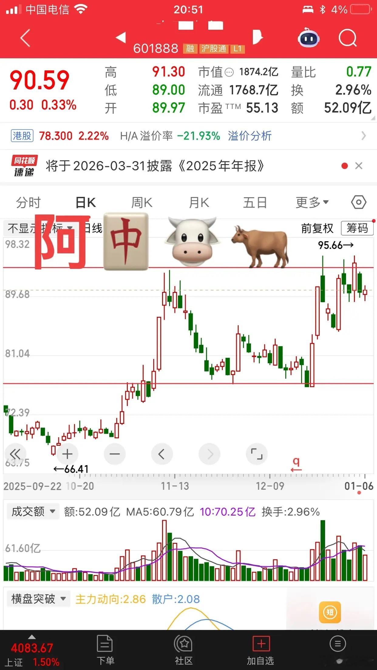 阿中阳放阴缩价格临近💯;重势不重价阳线多;阴线少;支撑有支撑力缩量的小阳线🐮放量处需要更大的成交量去接力压缩K线一目了然;耐心等待