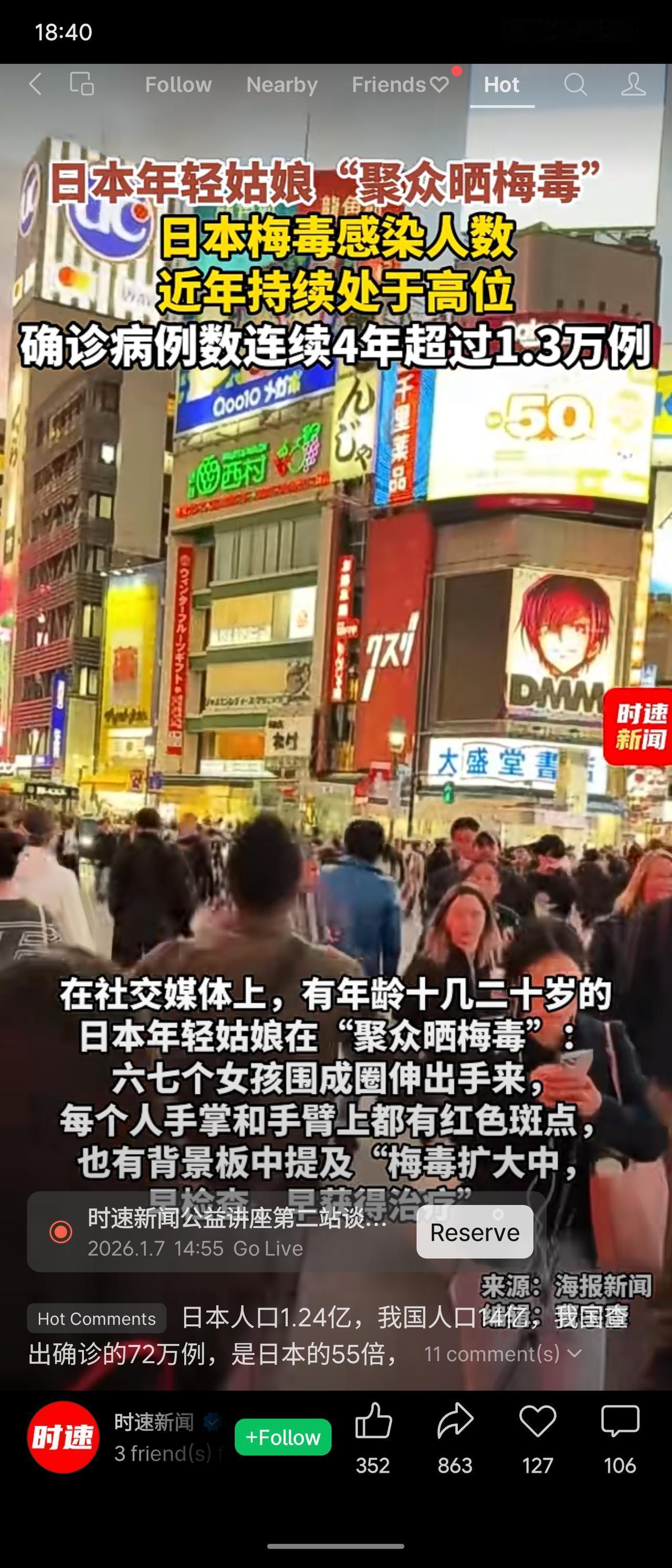 日本梅毒感染人数近年持续处于高位,2023年病例超1.5万例,2024-2025年也均超1.3万例。同时,社交媒体上出现年轻女性“聚众晒梅毒”现象,多人展示手臂红斑,引发关注。
