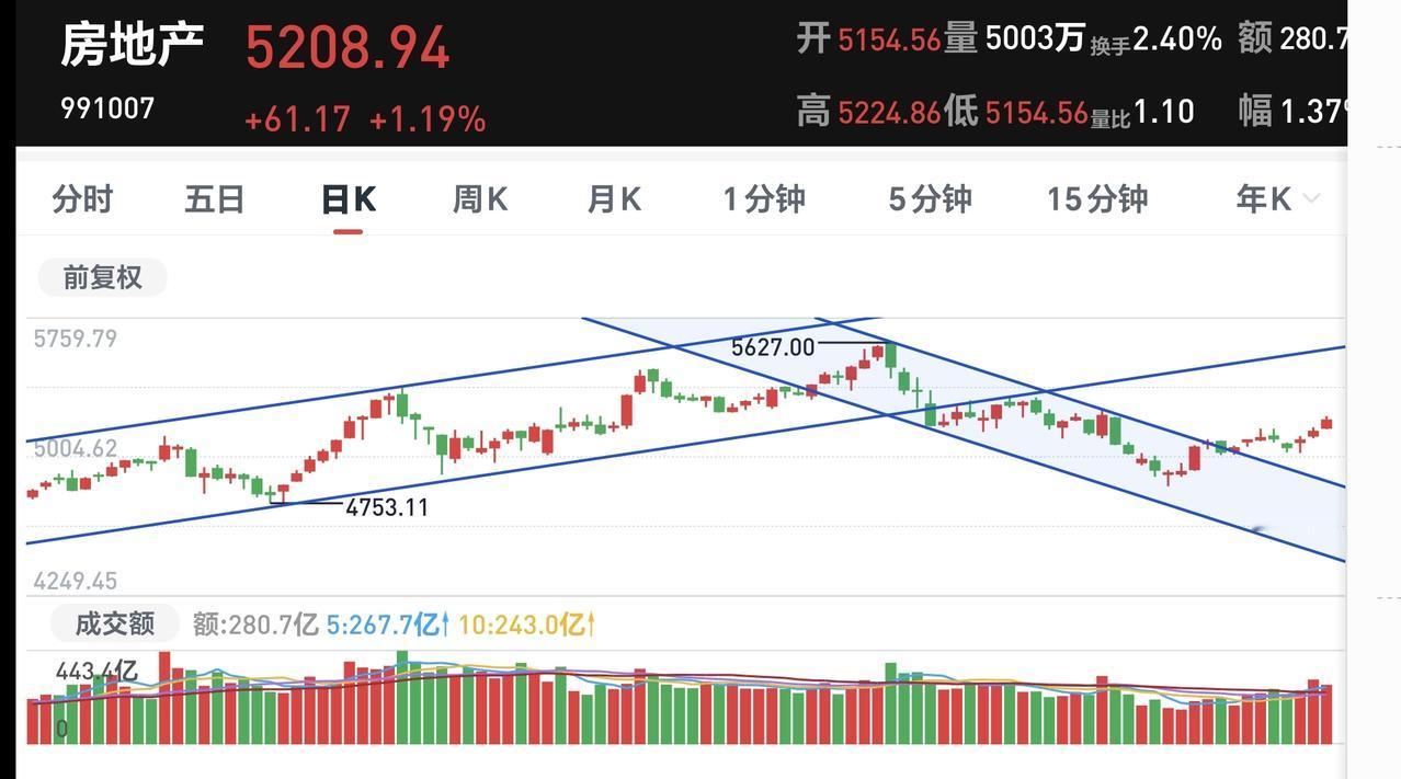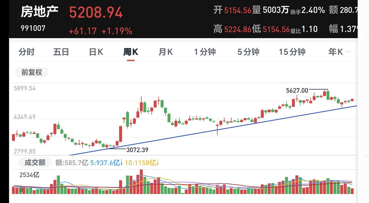 基金:房地产板块是什么情况 房地产板块昨天也是上涨,晚上净值更新上涨了1.96%,已经连续上涨了3个交易日,这个板块昨天加仓排行榜见下面的截图3,持有人数排行榜见下面的截图4,加仓人数最多的是中银金融地产,持有人数最多的是招商沪深300地产权重。 我们来看一下下面的截图5,这是房地产板块日K线图,从图中可以看出,我画了两条倾斜向上的斜线,这是房地产板块日线级别上涨通道,很早之前下跌跌破了这个上涨通道的下轨,然后我又画了两条倾斜向下的斜线,这是房地产板块日线级别短期下跌通道,前段时间上涨突破了这个下跌通道的上轨,也就是说,房地产板块日线级别短期下跌趋势有可能已经被改变。 我们来看一下下面的截图6,这是房地产板块周K线图,从图中可以看出,我画了一条倾斜向上的斜线,这是房地产板块周线级别上涨趋势线,现在的位置处于这个上涨趋势线之上,持有的人可以继续持有,除非跌破这条上涨趋势线才可以考虑要不要止盈出来观望。 我没有房地产板块的基金,我宁可持有白酒板块的基金,也不会持有房地产板块的基金,如果消费起来了以后,白酒板块还是有希望的,最起码会让我们存在着一份念想。 我每天都会分享我的观点,我的观点只代表我个人的看法,不能作为你操作的依据,据此操作后果自负。