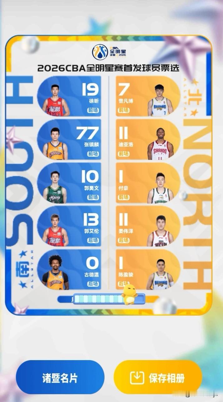 2026年CBA全明星投票活动已经进入第3天,你一票我一票,不负期待往前跑。