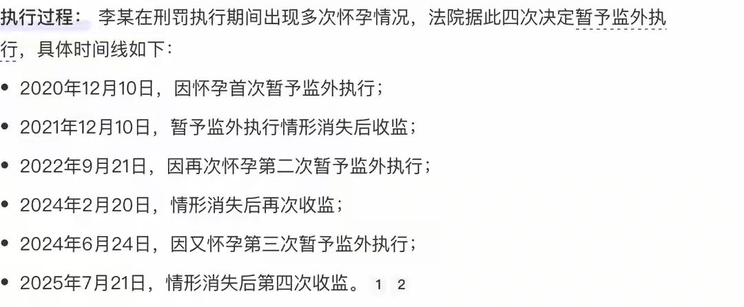 重庆女子获刑四年八个月竟连续四次“精准怀孕”逃避坐牢!法院四次监外执行引全网震怒:孩子的父亲到底是谁?法律的人道关怀岂能沦为罪恶的保护伞? 当法律遇上生命的重量,天平该如何倾斜?重庆女子李某用四年四次“精准”怀孕,给出了一个充满争议的答案。一纸贴在渝北区人民法院公告栏上的公示,撕开了一场长达六年的刑罚“躲猫猫”游戏。犯罪获刑四年八个月,她却至今未曾踏入监狱一步。这究竟是法律对人性的温暖庇护,还是被精心算计的规则漏洞?每一个追问都敲打着公众对公平最敏感的神经。 时间线清晰得令人窒息。2019年判决生效,2020年底因首次怀孕监外执行。此后便开启了“收监即怀孕”的循环:2021年底要收监,次年9月怀上;2024年初要收监,同年6月又怀上;2025年中要收监,仅一个月后再度宣称有孕。四次怀孕,四次暂予监外执行,时间衔接宛如经过精密计算。那张法院公告冰冷地记录着这一切,而公告栏前的看客心中早已翻涌起惊涛骇浪。 法律条文本身闪烁着人道主义的光辉。《刑事诉讼法》明确规定,对怀孕或哺乳期的妇女可暂予监外执行。立法初衷崇高而温暖:保护无辜胎儿免受囹圄之灾,捍卫生命最初的权利。这是文明社会的标志,是对母性本能最基础的尊重。但当“怀孕”变成一张可以反复申领的“免监禁通行证”时,这份善意是否已在无形中被架上了熊熊炙烤的火焰? 公众的愤怒与质疑如山呼海啸般涌来。评论区化身为最真实的民意浮世绘:“孩子到底生下来没有?”“是谁给了她怀孕的条件?”“这对受害者公平吗?”更有尖锐的讽刺直指核心:“这卡点技术,堪称人体闹钟。”这些声音混杂着不解、愤怒与深深的无力感,共同指向一个终极疑问:我们赖以信任的法律体系,是否正在被个别人士的“生育策略”悄然腐蚀? 律师的解读为我们拨开了专业迷雾。恶意规避刑罚并非无法界定。连续卡点怀孕、缺乏实际抚养意愿、虚构生育事实甚至利用“代孕”操作,都可能成为收监的关键证据。山西与四川的已有判例证明,司法机关的利剑始终高悬。一旦查实“以孕避刑”,暂予监外执行的决定可以撤销,刑期计算可以暂停,法律的铁腕从未真正缺席。 然而,此案真正刺痛人心的,是那份对生命极致的功利化利用。新生命本应是爱与希望的结晶,何时竟沦为算计刑期的工具?我们保护孕妇,是为了保护生命的尊严与延续,而非将子宫异化为规避惩罚的“特权器官”。若每一次怀孕的背后,都是一场对法律底线的冰冷试探,那么最终被伤害的,除了法律的权威,更是每一个孩子应得的、纯粹的被期待权。 站在人性的十字路口,我们既要坚守对生命权的至高敬畏,也绝不能纵容对法律善意的系统性滥用。此案如同一面镜子,照见了制度在温情与刚性之间的艰难平衡。它要求我们的司法不仅要有诊断“是否怀孕”的医学能力,更要有洞察“为何怀孕”的社会智慧。监督必须前置,核查必须贯穿始终,让保护真正给予需要的人,让算计在阳光下无处遁形。 重庆女子四次怀孕的故事,终将随着调查的深入而水落石出。但它的意义远超个案本身。它是一场全民参与的法理公开课,逼迫我们共同思考:如何让法律的温度不被利用成漏洞?如何让正义的实现不伤害无辜的生命?这道难题的答案,关乎我们每一个人对公平社会的最终信仰。唯有让每一次“监外执行”都经得起良知的拷问,法律的阳光才能照亮每一个它本该温暖的角落。 (来源:根据极目新闻等媒体报道及网络公开信息综合撰写) 法律与人情 司法公正