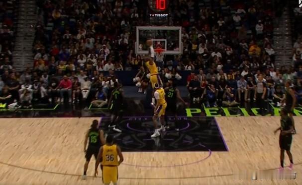 太吓人了,湖人111-103大胜鹈鹕,这场比赛41岁的詹姆斯有一个球很吓人,球迷看到这个球觉得很不可思议,彻底都被詹姆斯征服了。 这个球是这样的,比赛第二节还有1分多钟的时候,詹姆斯底线空切接到东契奇的传球直接来了一个差点平筐暴空接扣轻松拿下两分,詹姆斯这个空接太吓人了要知道这是41岁的詹姆斯啊不是巅峰詹姆斯,41岁还能跳那么高全联盟除了詹姆斯谁也做不到,就是41岁的乔丹也做不到詹姆斯这个球,詹姆斯这个球真是太厉害了,而且詹姆斯这个球口得太轻松了,这就是詹姆斯厉害之处,全联盟除了詹姆斯谁也做不到啊。 詹姆斯太厉害了,希望詹姆斯打到45岁。
