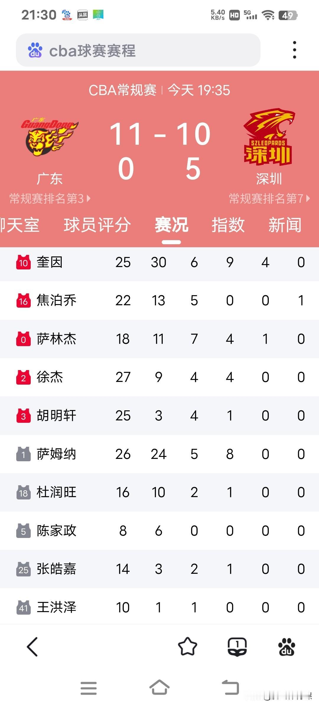 广东主场110:105险胜深圳,杜锋赛后这样评价深圳队: 深圳队自从郑指导接手球队之后变化很大,人员调整和战术体系有所不同,贺希宁,王浩然状态不错,老将周鹏比赛经验非常丰富,加上深圳队双小外进攻火力都很强,相信深圳队在郑指导的带领下会越打越好。 不得不说,杜锋非常擅长夸对手,虽然球队赢球并没有忽视对手的强大。