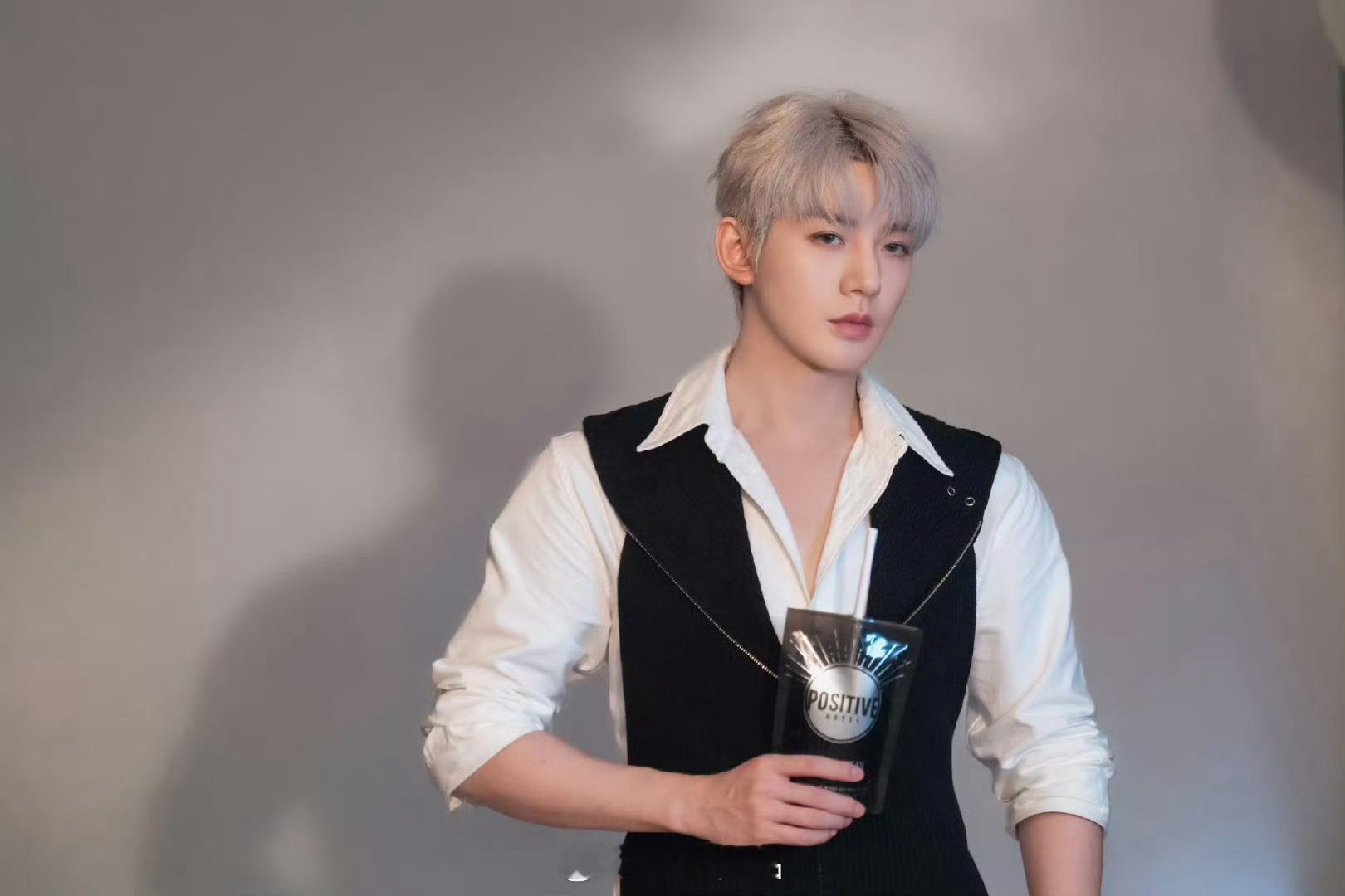 顺毛银白发配上深V白衬衣,再加上黑马甲邓为这个造型贵气得让人移不开眼睛,我为天生就是贵公子范儿