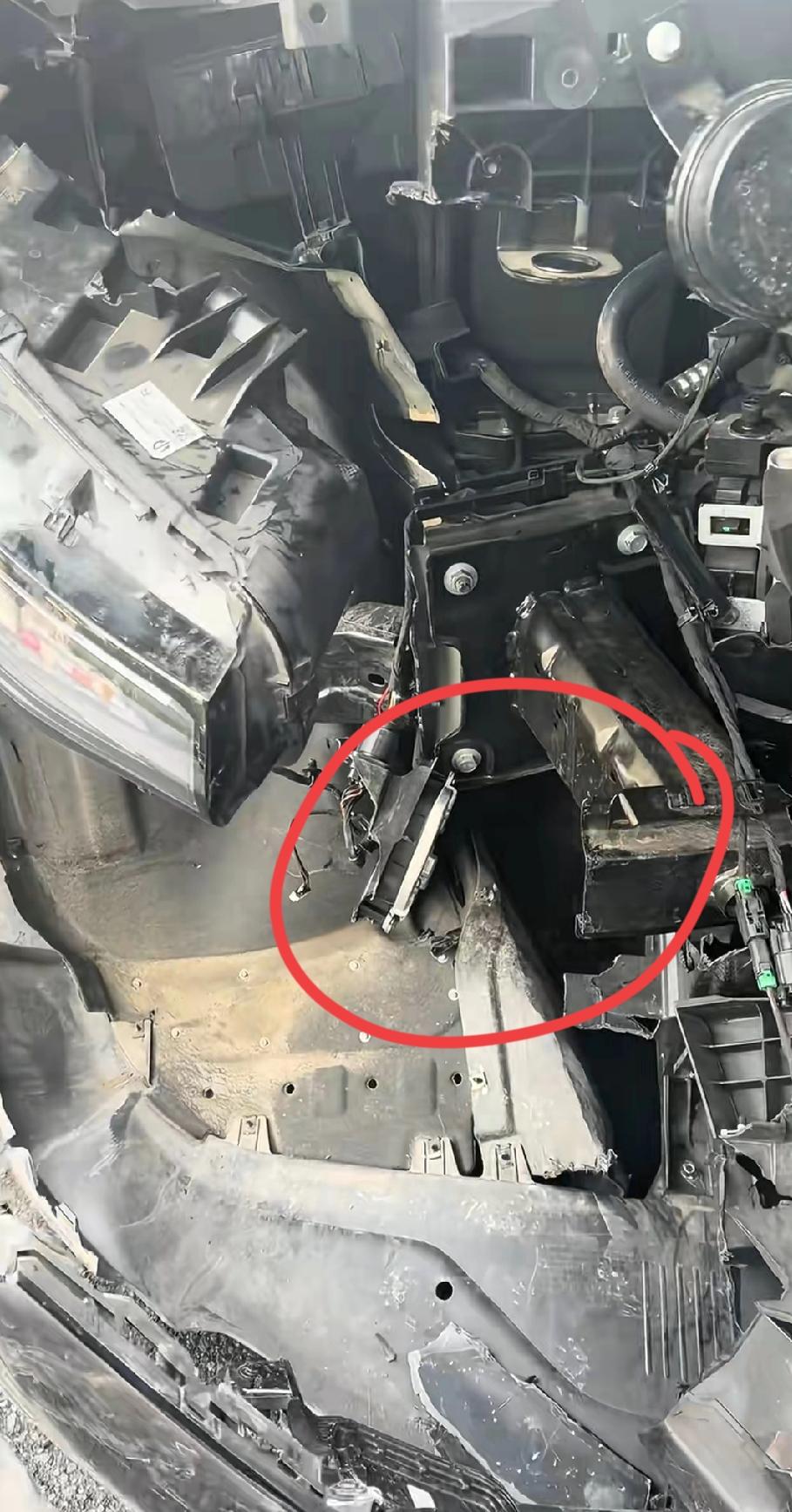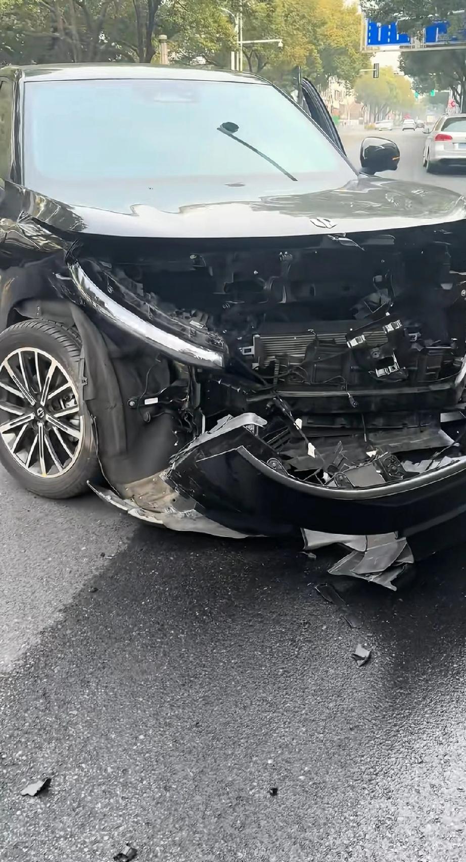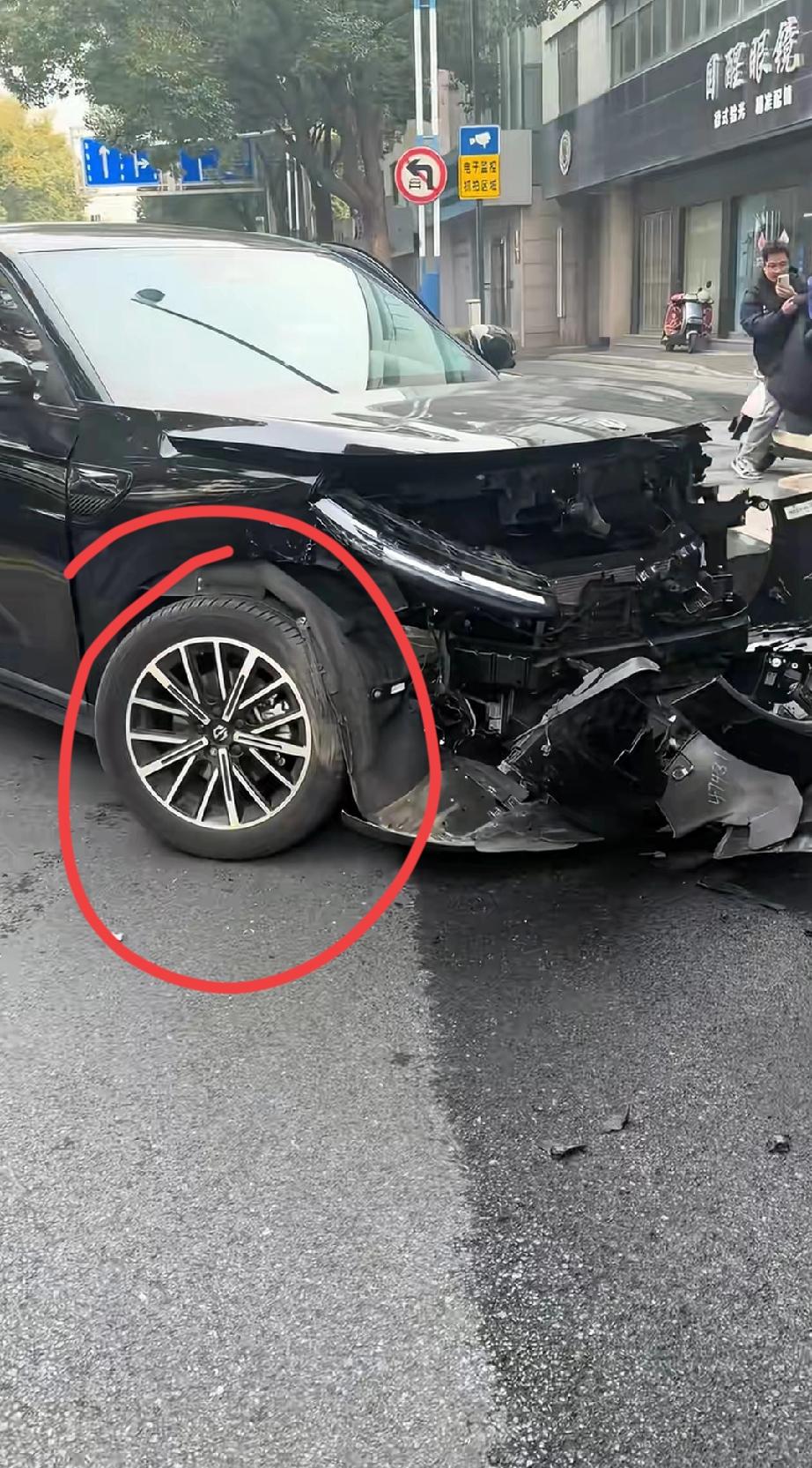 请问一下,这是哪款新能源车?轮胎也断了,这个大梁也断了,旁边的保时捷好像只受点皮外伤。
