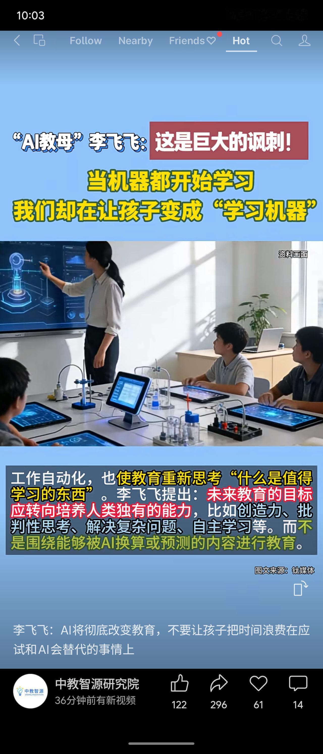 斯坦福教授李飞飞指出,在AI时代,继续沿用旧模式让孩子机械记忆知识是巨大讽刺。她认为AI使重复性工作自动化,暴露了教育结构性问题。未来教育应转向培养创造力、批判性思维、解决复杂问题等AI无法替代的人类独特能力,从“记住什么”转向“如何学习与创造”。