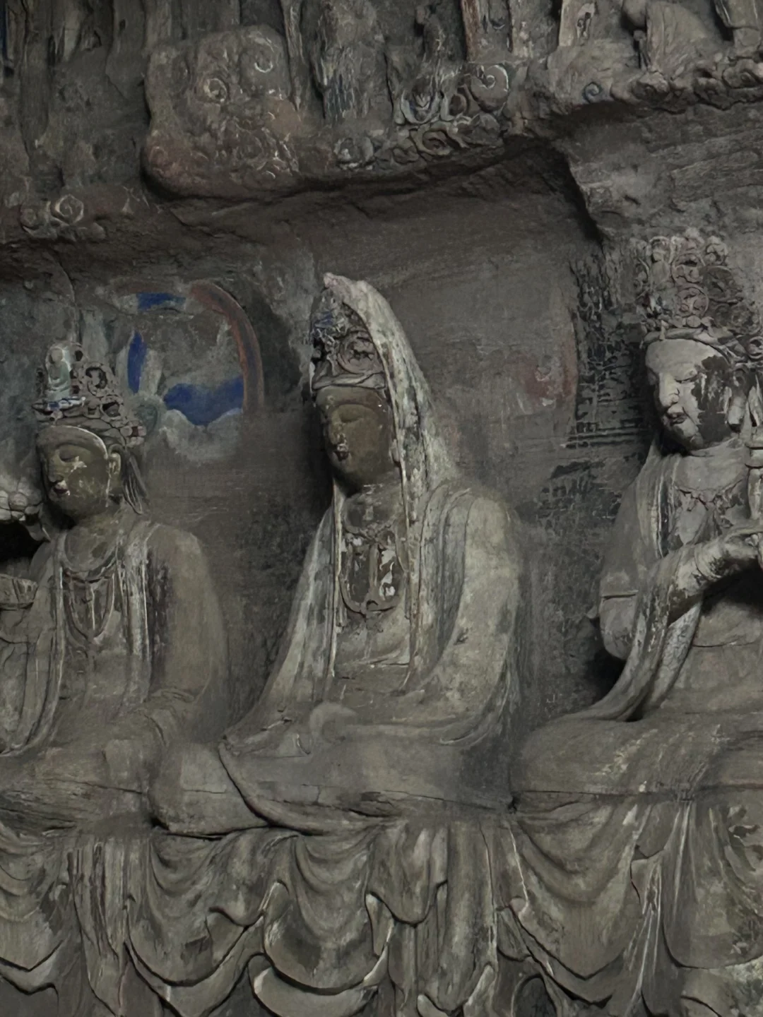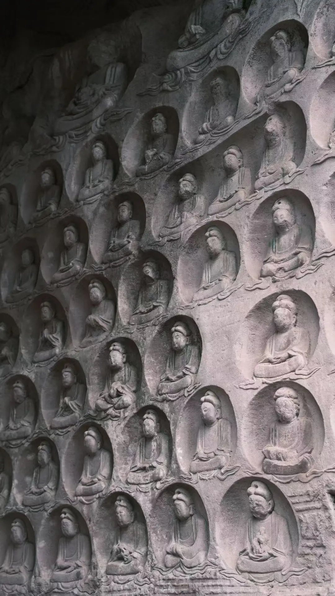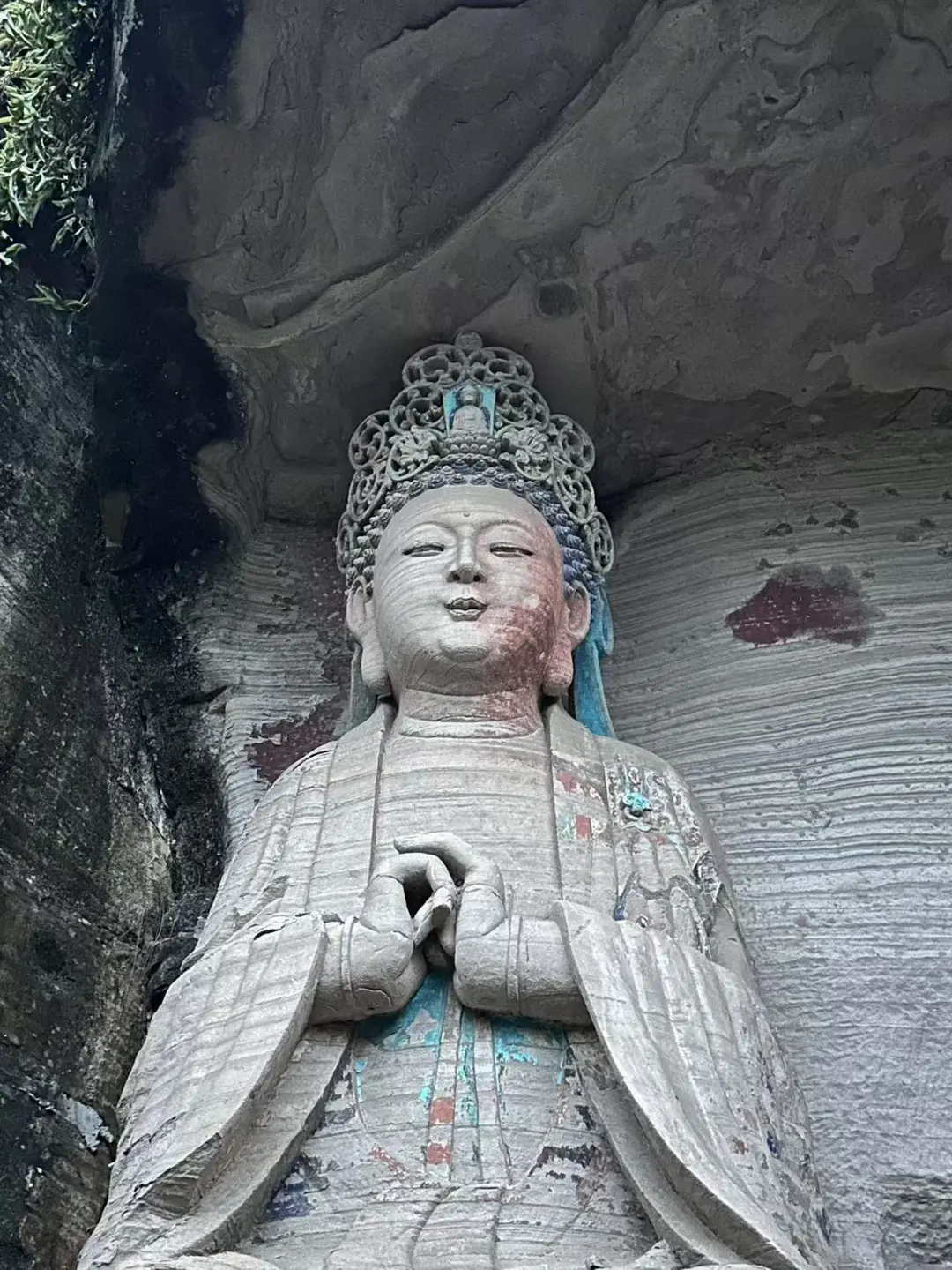 [一R]毗卢洞。紫竹观音/水月观音超级震撼。从不同角度观赏他的表情年龄甚至性别都不同。虽然色彩已被风霜带走,仍能想象千年前的风姿。