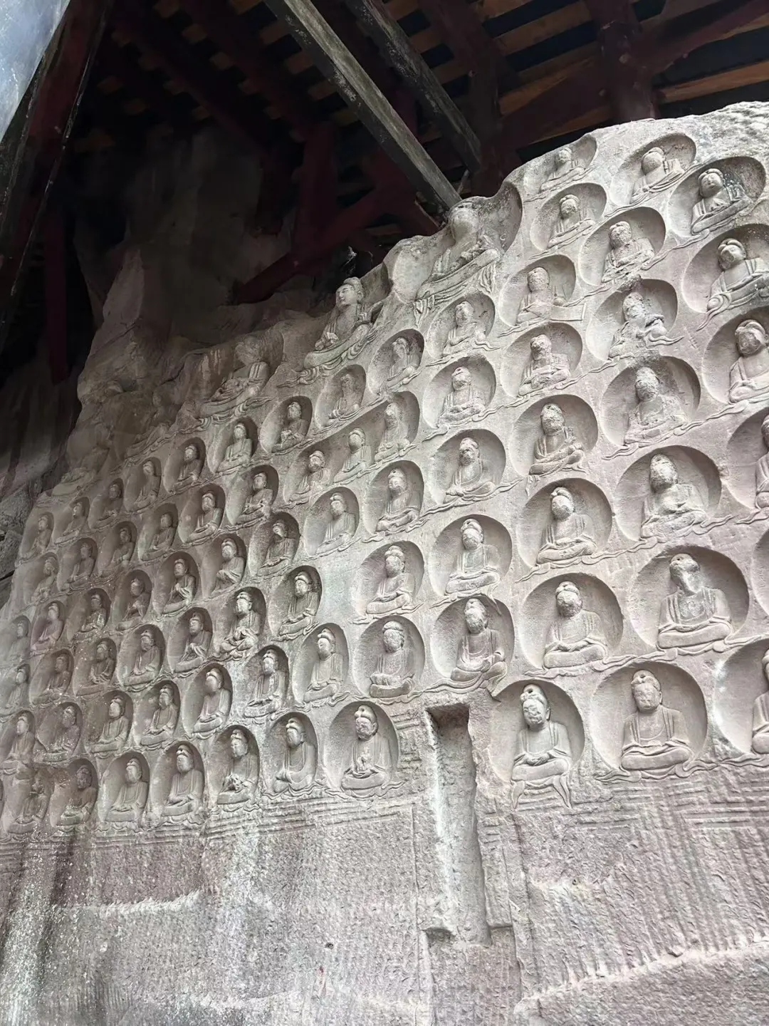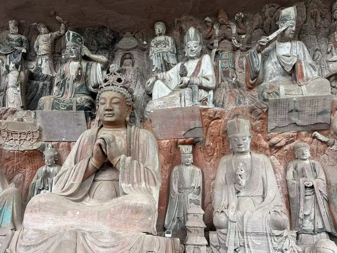[三R]圆觉洞。以造有十二圆觉而得名。同时高度接近7米的莲花观音、净瓶观音也是圆觉洞的名片。拈花佛更是开创了此类题材的先河。