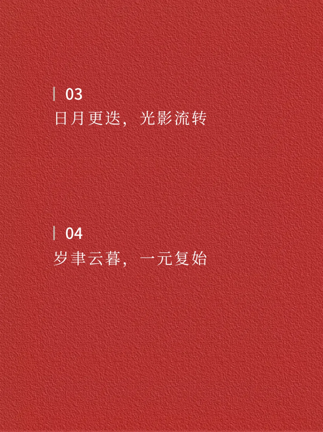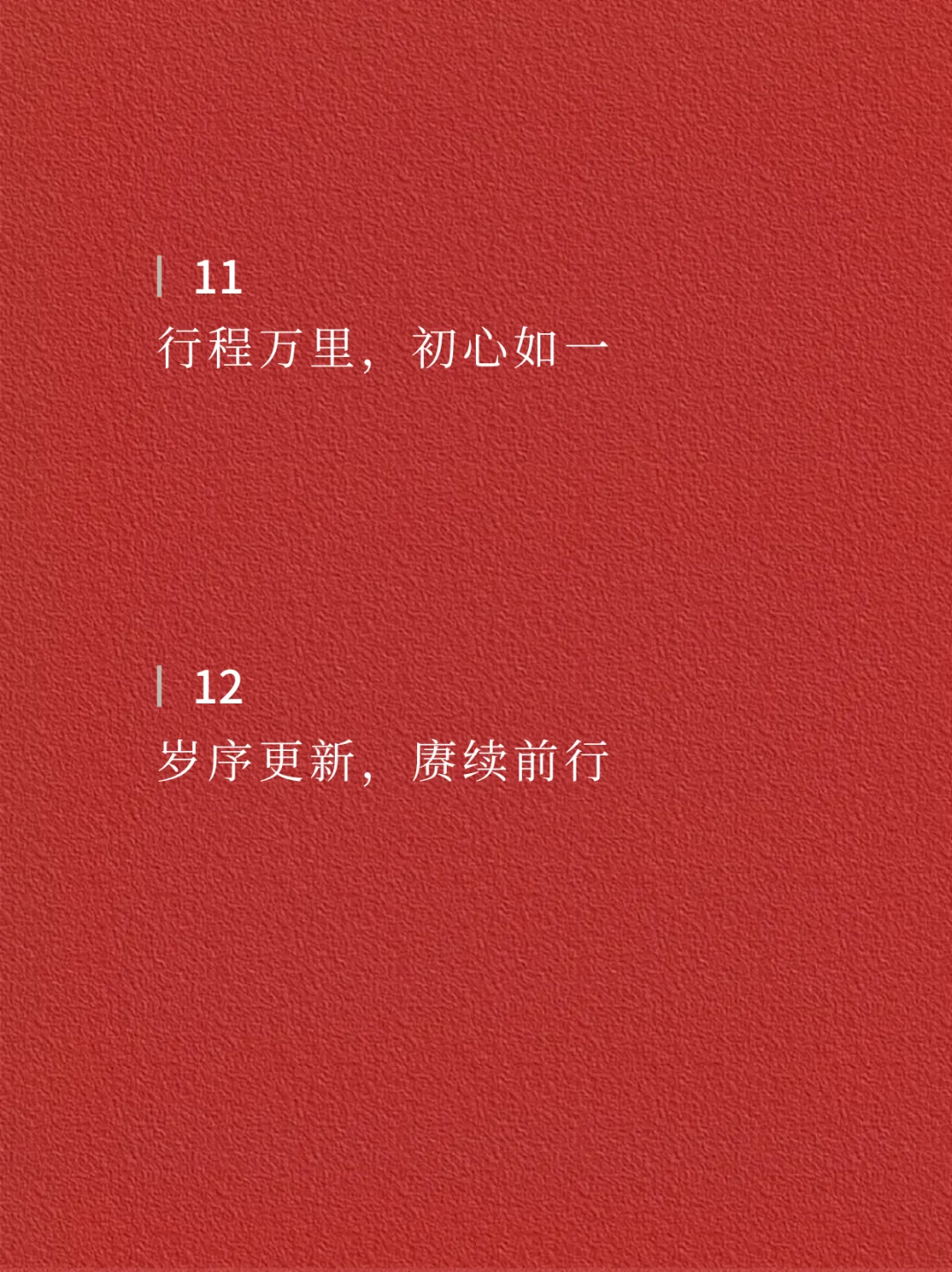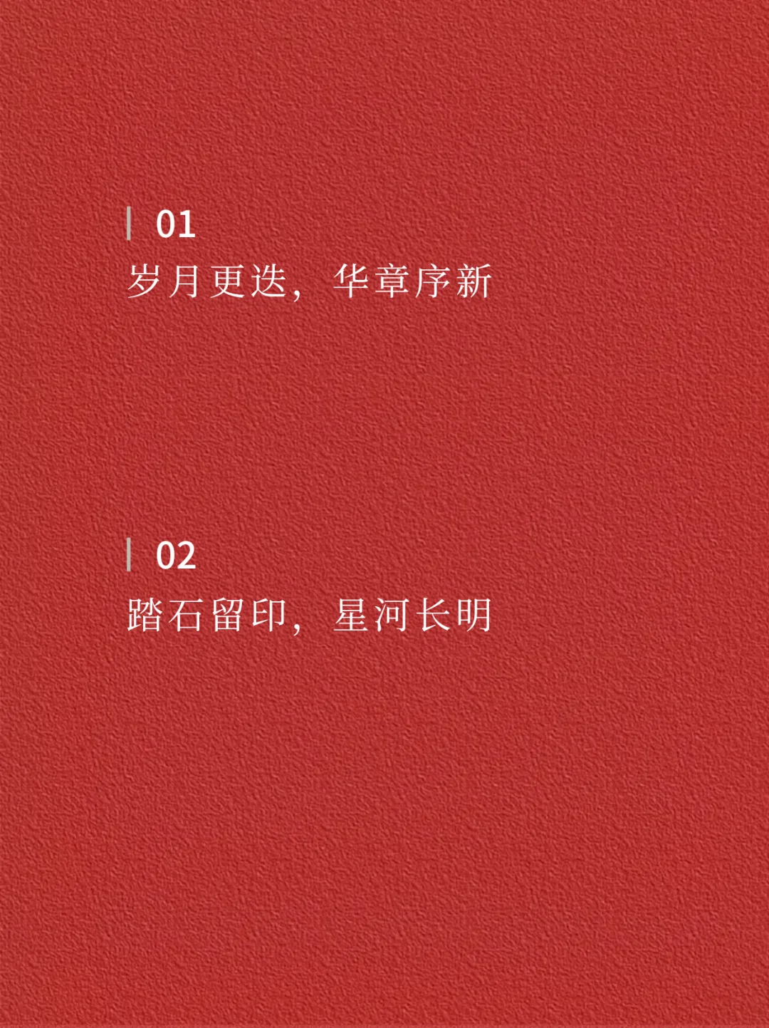 📝📝 01 岁月更迭,华章序新 · 02 踏石留印,星河长明 · 03 日月更迭,光影流转 · 04 岁聿云暮,一元复始 · 05 昭昭如愿,岁岁安澜 · 06 鉴往知来,更待繁花 · 07 时序更替,岁月流金 · 08 勇毅笃行,踵事增华 · 09 追光逐梦,步履不停 · 10 星霜荏苒,居诸不息 · 11 行程万里,初心如一 · 12 岁序更新,赓续前行 · ✨✨ —The end— 🌈感谢阅读