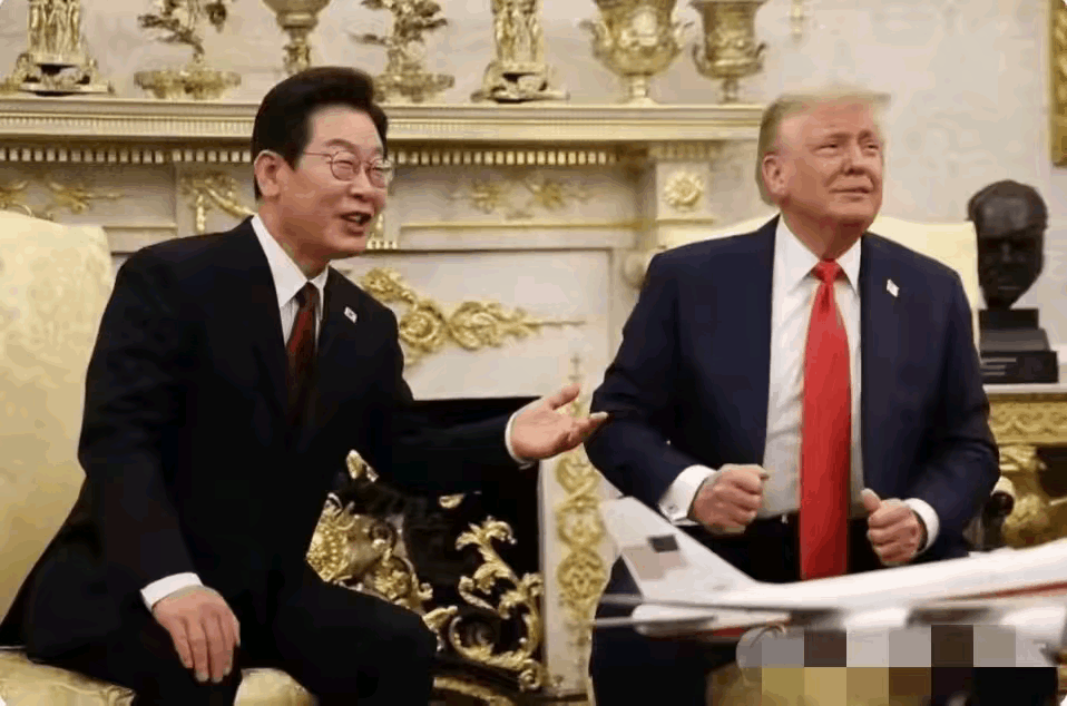 李在明和特朗普合影,他们都是总统,但气质相差甚远。一个斯文儒雅,一个放飞自我。