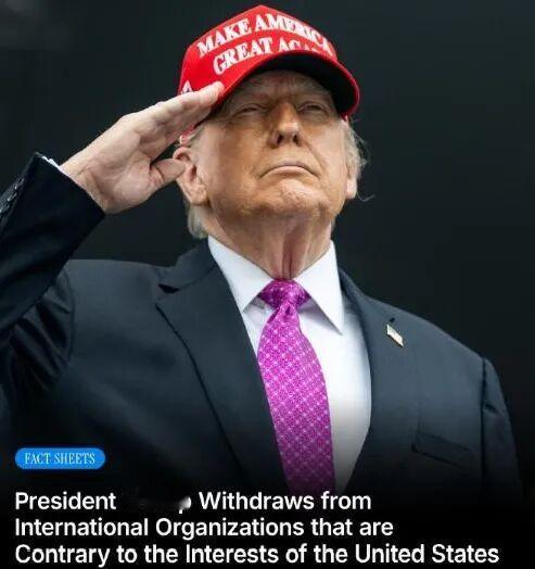 美国又出神操作! 摆明了就是不想当老大了呗。 就在刚刚,1月7号,国际上爆出个新闻:川普签署公告,宣布美国马上退出35个非联合国体系的国际组织,再加上31个和联合国相关的机构,一下子“退群”66个,这么大规模的退出,在全球合作史上真不多见。 这已经不是他第一次这么干了,之前任期就退过不少群,后来有总统把部分组织加了回去,现在他又重启退群模式。核心原因就是觉得这些组织不符合本国利益,不想再投入资金和精力。 联合国的会费分摊里,美国占二十二个百分点,咱们中国是二十点零零四个百分点,已经差得不多了。但美国还老拖着会费不交,欠的钱累计不少,而中国一直按时缴清。 美国这么一搞,很多国际组织的资金会紧张,像应对疫情、气候变化的合作都会受影响。不少国家都觉得这是单边做法,不太认可。毕竟全球很多事都需要大家一起配合,一个大国说退就退,容易打乱原有节奏。 有人说这是美国优先的老套路,也有人觉得是在逃避责任。后续会不会有其他国家跟着学,这些退出的组织能不能正常运转,都是未知数。中国分摊的比例越来越高,也意味着要承担更多国际责任,这既是实力的体现,也是一种考验。 各位读者你们怎么看?欢迎在评论区讨论。