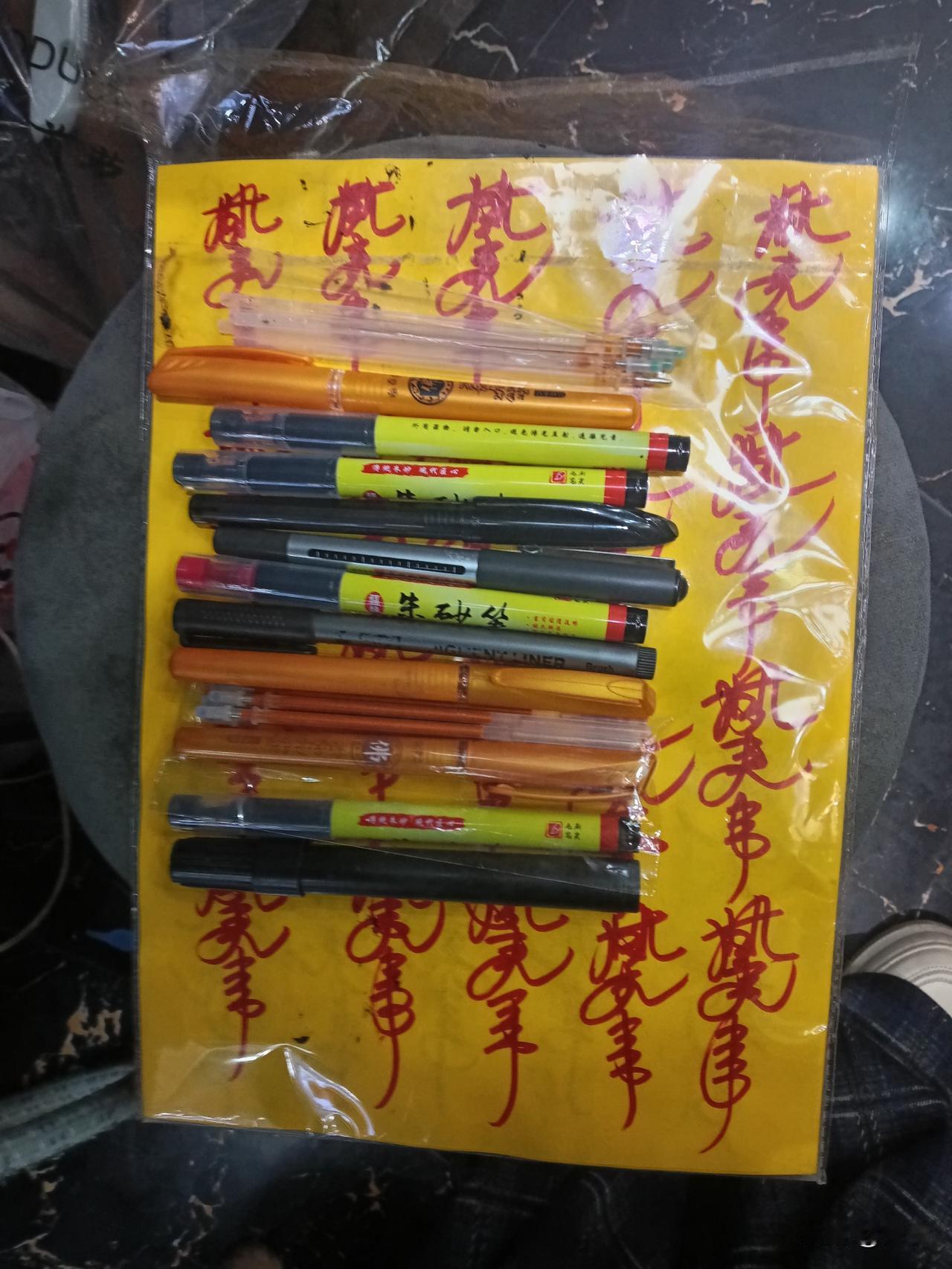 人家女人的笔袋里不是口红就是粉底反正都是化妆品护肤品之类的,我的化妆包里面不是抄经笔就是朱砂笔。要不就写字笔。天天不是研究画佛菩萨要么就是研究画符写字,要么读经。