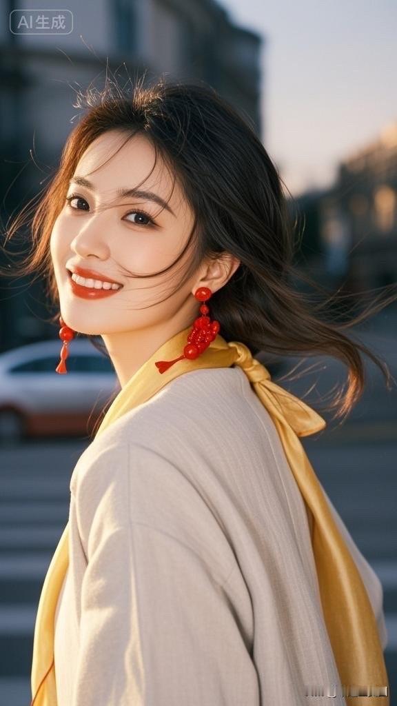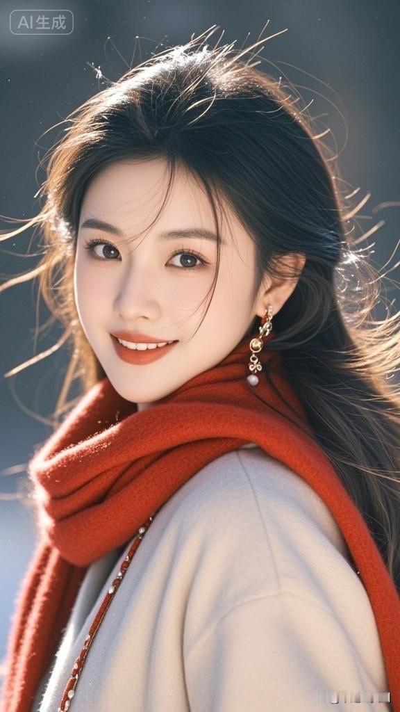 冬日暖阳下的甜美笑容,暖心围巾与耳环的完美搭配,尽显温柔与优雅。