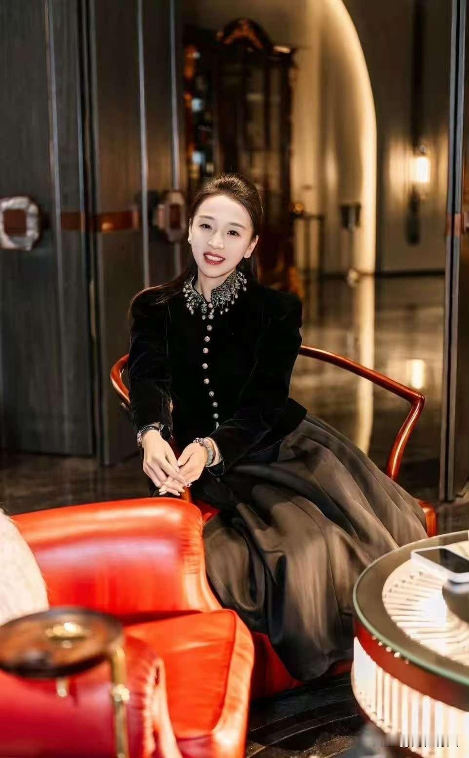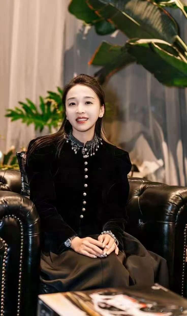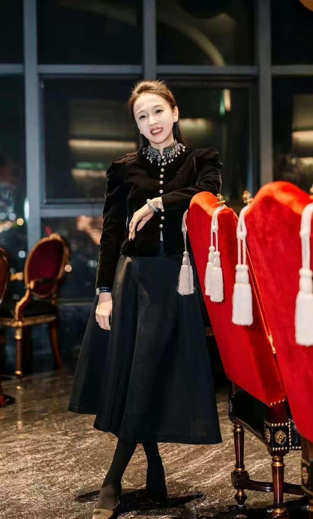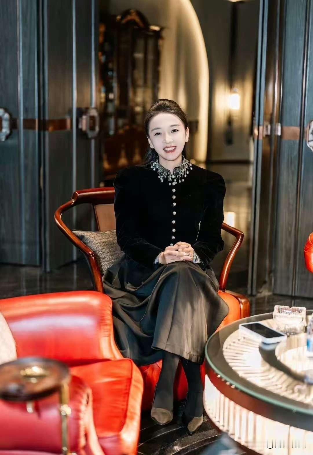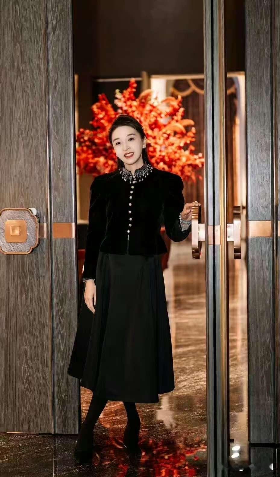 黑色系衣服,展现出别样的魅力与风情,黑色衬得主持人的肌肤更加白皙,身材曲线也被完