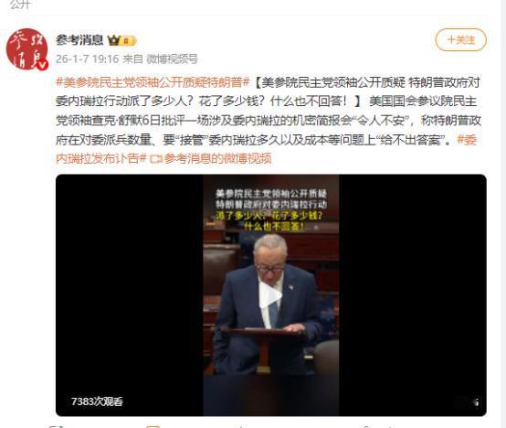 国政坛彻底炸了,参议院民主党领袖舒默当着所有媒体的面,直接把特朗普政府的“遮羞布”撕了个稀烂,怒批刚开完的涉委内瑞拉机密简报会“全程让人脊背发凉”,四个关乎行动成败的关键问题,对方居然一个都答不上来。   要知道这可是级别极高的机密简报,涉及美国对委行动的核心部署,结果舒默抛出的四个关键问题,特朗普政府的代表居然一个都答不上来。   这种级别的简报会本就是国会与政府就海外重大行动对接的关键环节,参会的都是国防、外交等部门的核心官员,按说该对所有部署细节了然于胸,可面对舒默的追问,这群人却集体陷入沉默,连一句靠谱的回应都挤不出来。   舒默在简报会后的新闻发布会上当着所有媒体的面直接开炮,说整场简报会听下来全程让人脊背发凉,满耳朵都是政府一厢情愿的想法,压根没有任何切实可行的行动规划。   他抛出的四个问题每一个都戳中要害,既包括这次对委派兵的具体数量,也涉及美国打算“接管”委内瑞拉多久,还有行动所需的具体成本,更关键的是追问这种好战行径何时才能停止。   这四个问题直接关系到对委行动的成败与否,也关乎美国是否会陷入另一场无休止的海外纷争,可特朗普政府的代表就是一个都答不上来。   更让舒默愤怒的是,特朗普政府这次对委行动本就疑点重重,此前国会多次问询时,国务卿鲁比奥和国防部长赫格塞思还曾信誓旦旦地保证,美国对委政策的核心是打击毒品走私,绝非搞政权更迭。   可就在1月3日凌晨,美军突然对委内瑞拉首都加拉加斯发动大规模军事行动,直接强行控制了委总统马杜罗及其妻子并将两人带至美国,转头就宣称要对委内瑞拉进行“管理”,这前后的表态完全是自相矛盾。   舒默直言,特朗普政府不仅在简报会上答不上来关键问题,之前还一直在公然欺骗国会和美国民众,这种混乱且可能非法的行动,正在把美国一步步拖进另一场战争的泥潭。   接着舒默的批评,多位民主党议员也纷纷站出来发声,指责特朗普政府的鲁莽行径。   参议院外交关系委员会高级委员珍妮·沙欣明确表示,特朗普内阁成员先前的汇报全是误导,让国会对其对委长期战略一无所知,而美军的行动很可能会加剧整个拉美地区的不安全局势。   新泽西州联邦参议员安迪·金更是直接点破,几周前鲁比奥和赫格塞思还盯着每位参议员的眼睛保证不搞政权更迭,现在看来这就是公然的谎言,特朗普政府完全无视宪法规定的武装冲突审批程序,把国会当空气。   可这边舒默的话还没落地,特朗普那边就抛出了更让人震惊的言论。在1月7日晚接受《纽约时报》采访时,他直言预计美国将在未来数年内“管理”委内瑞拉,还要开采当地庞大的石油储备,甚至毫不避讳地说会以盈利性的方式重建委内瑞拉,让美国大型石油企业进入当地。   更离谱的是,美国能源部长克里斯·赖特同一天还宣称,美国将“无限期”控制委内瑞拉的石油销售,还考虑为在委投资的美企建立补偿机制。   这种前后脱节的表态让美国政坛的质疑声浪越来越高,舒默特意强调,特朗普在2024年总统竞选期间反复承诺要反对无休止的战争,可现在却毫无阻拦、毫无讨论地把美国一头扎进另一场战争。   他还提醒所有人,多年来美国多次试图在其他国家搞政权更迭和所谓的国家重建,最终付出的都是鲜血和金钱的双重代价,这次对委行动恐怕也难逃同样的结局。   值得注意的是,特朗普政府甚至连最基本的权责划分都没理清,此前被问及在委事务最终由谁负责时,特朗普只含糊地说了句“是我”,可具体的执行细节、各部门的协调机制全无下文。   而就在美军行动后,委内瑞拉、哥伦比亚、古巴和俄罗斯等多国已经明确表示强烈谴责,马杜罗夫妇在美国法院首次出庭时也直接对美方指控表示“不认罪”。   一场连核心问题都答不上来、连基本规划都没有的海外行动,不仅让美国政坛内部炸开了锅,也让美国在国际上再次陷入被动,难怪舒默会怒称这场简报会让人脊背发凉,毕竟这样混乱的决策背后,可能是无数人的鲜血和代价。