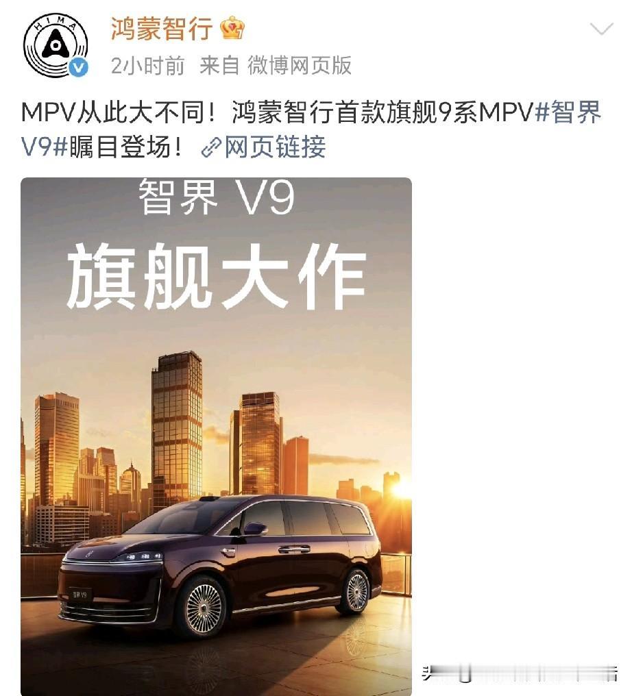 余承东放大招! 鸿蒙智行首款旗舰MPV智界V9要来了!友商们这次不掉层皮也得掉层皮了! 一句“MPV从此大不同”!直接期待值拉满,妥妥的MPV市场搅局者!余承东说自己不会营销太谦虚了! 智界V9作为鸿蒙智行的旗舰大作,搭载华为雪鸮智能增程系统CL TC综合续航里程最高达1250+km,气囊数量超越同级,车长:5359mm,车宽:2009mm 车高:1879mm,轴距:3250mm,舱内空间远超同级,还有华为乾崑智驾+鸿蒙座舱加持,简直是恐怖如斯,外观好看,质感拉满,一句话,短板全给堵死了,想想都让人期待! 问题来了,你觉得智界V9能突围成功吗?