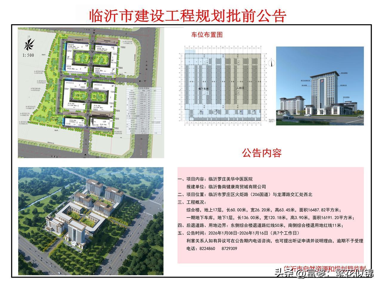 来了,临沂罗庄区又要建设一家医院 昨天,临沂自然资源和规划局发布建设工程规划批前公告,这个工程位于罗庄区西部,龙潭路和火炬路的交汇处,主要建设美华中医医院,包括17层的综合楼和地下车库,总共三万多平米。 报建公司是临沂鲁南健康商贸城有限公司,查了一下好像和鲁南制药没有啥关系。 罗庄医院还挺不少的,火炬路和湖北路交汇处还有家临沂高新区医院,西边有正在建设的高新区人民医院,东边有正在建设的罗庄区人民医院,还有正在营业的沂州医院和东山医院。 罗庄医疗条件真的很不错呢。