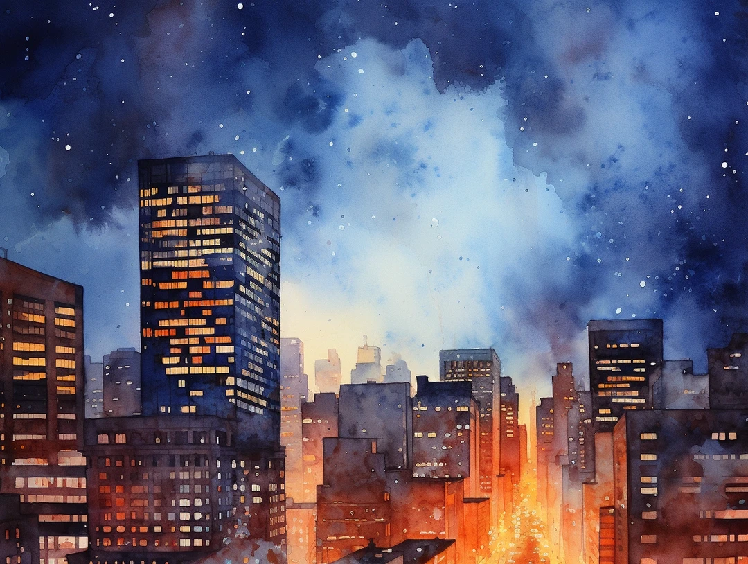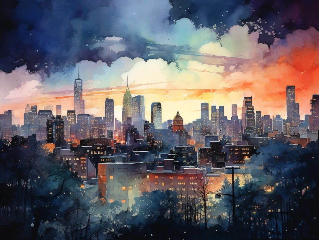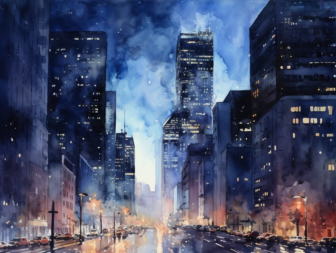 AI水彩:城市夜景
