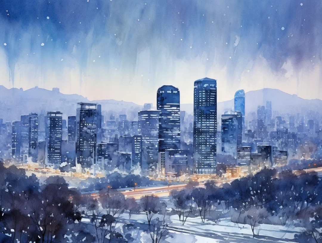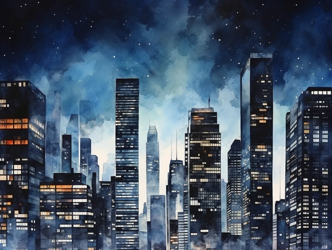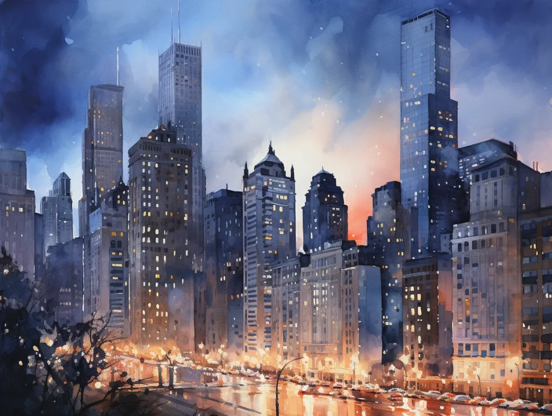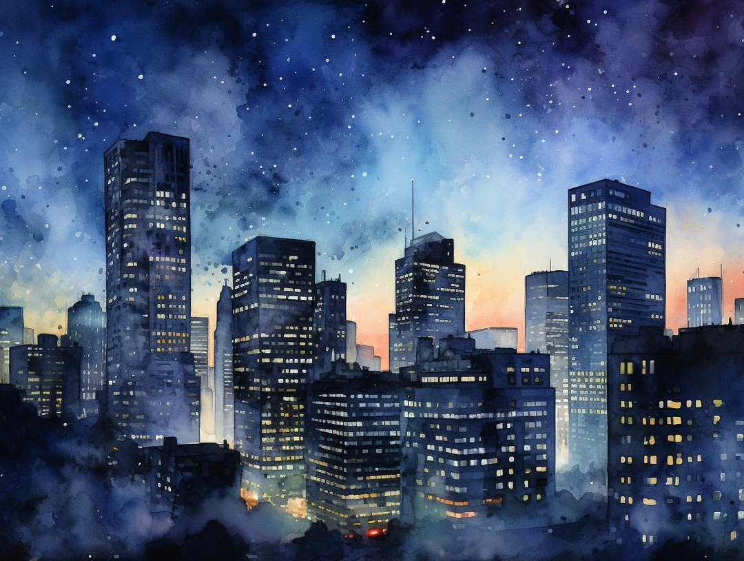 AI水彩:城市夜景