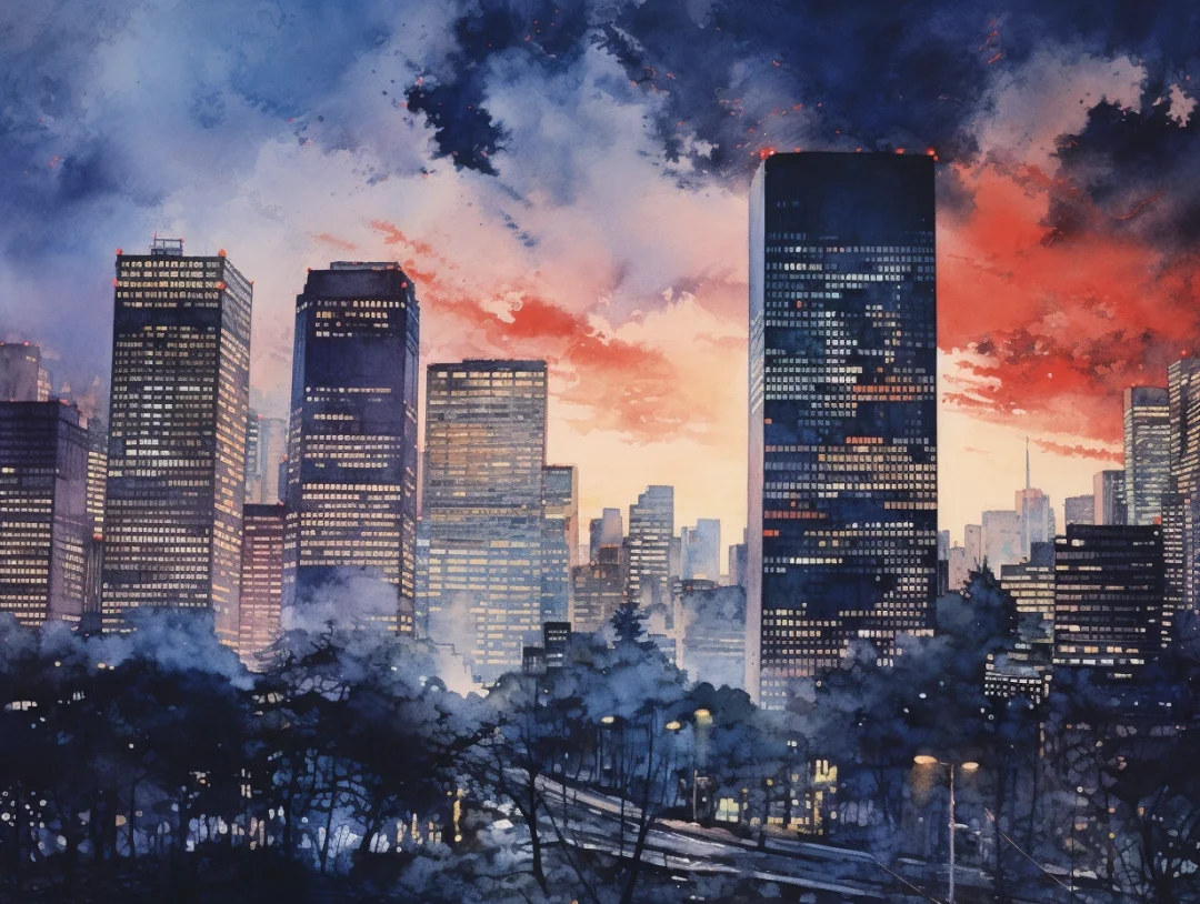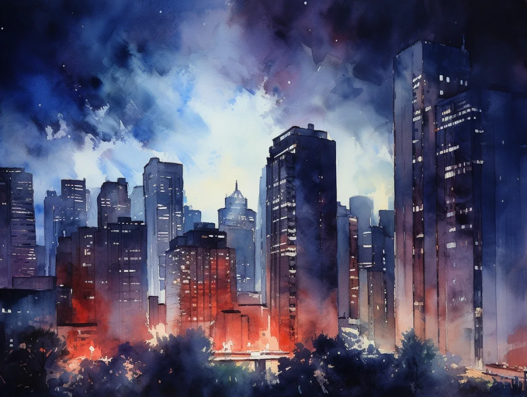 水彩 midjourney 城市夜景 夜景 城市 Ai绘画