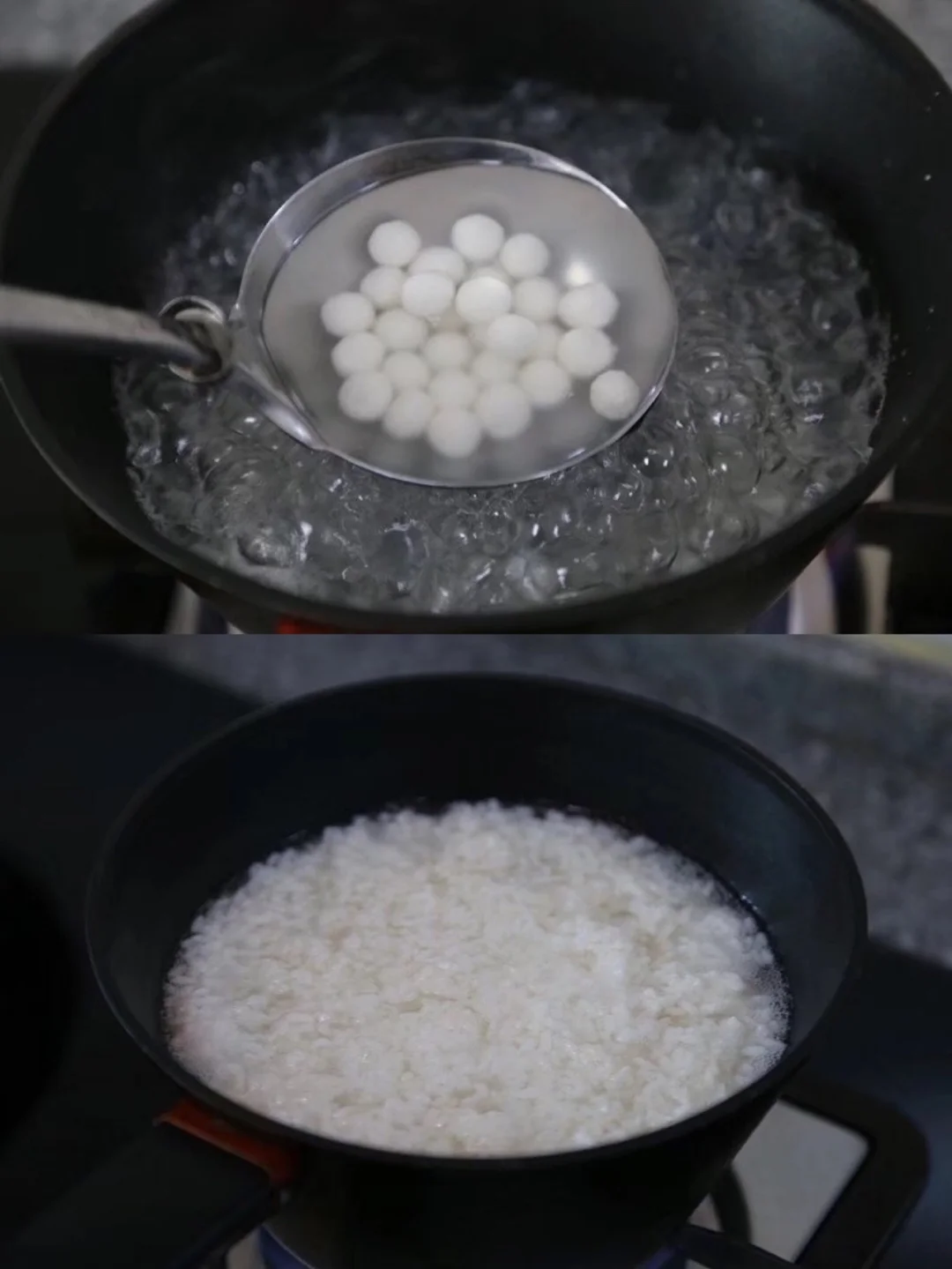 17.家里正好有丸子,所以就一起放进去煮了 煮甜酒的时候水别放太多哦 不然太稀了味道就不好了18.加入甜酒,煮一小会儿之后尝一下甜度觉得不够甜的话放一些冰糖