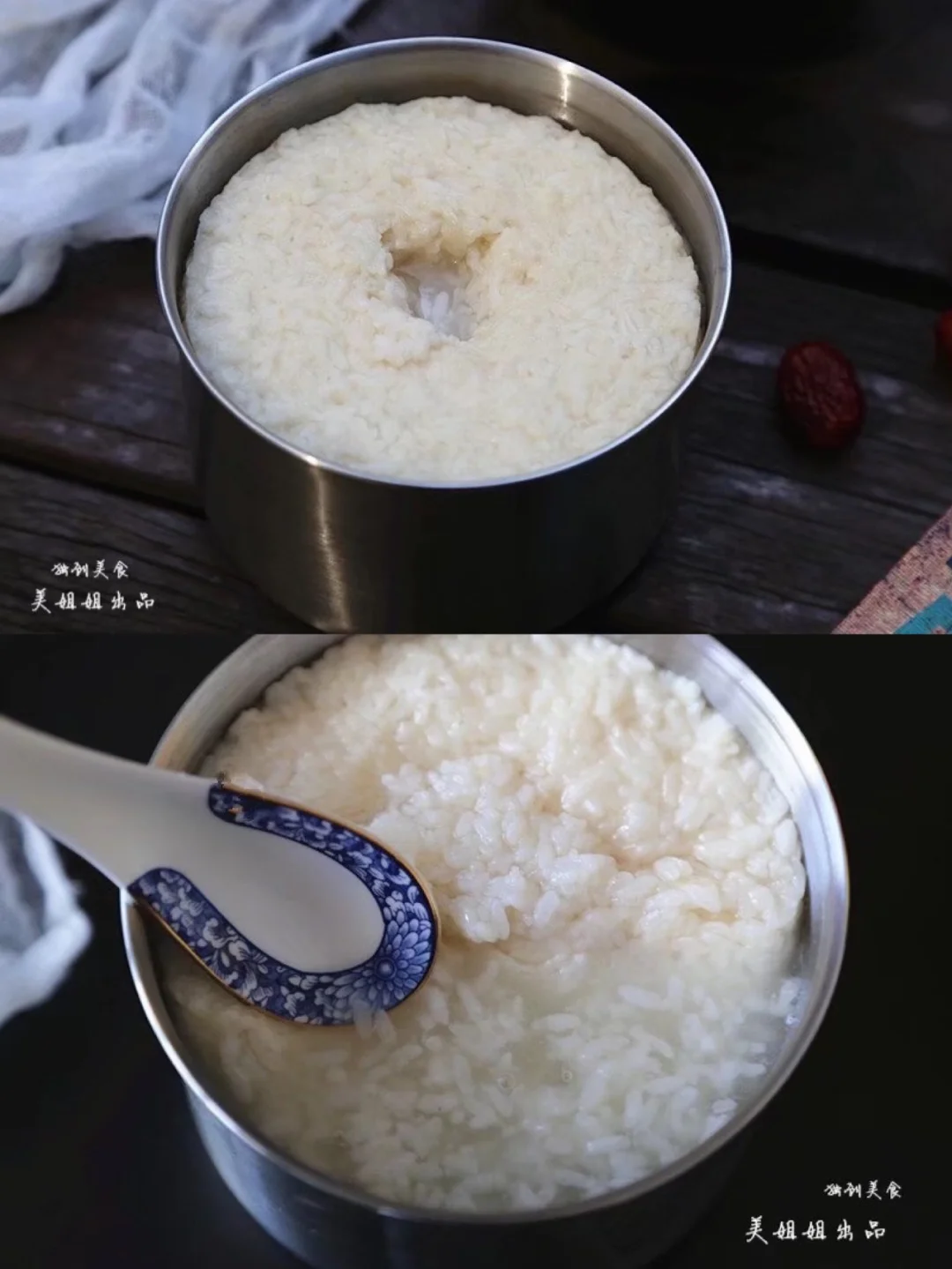 16.给你们看看,用勺子往边上押一下米 出来这么多水是不是很赞啊