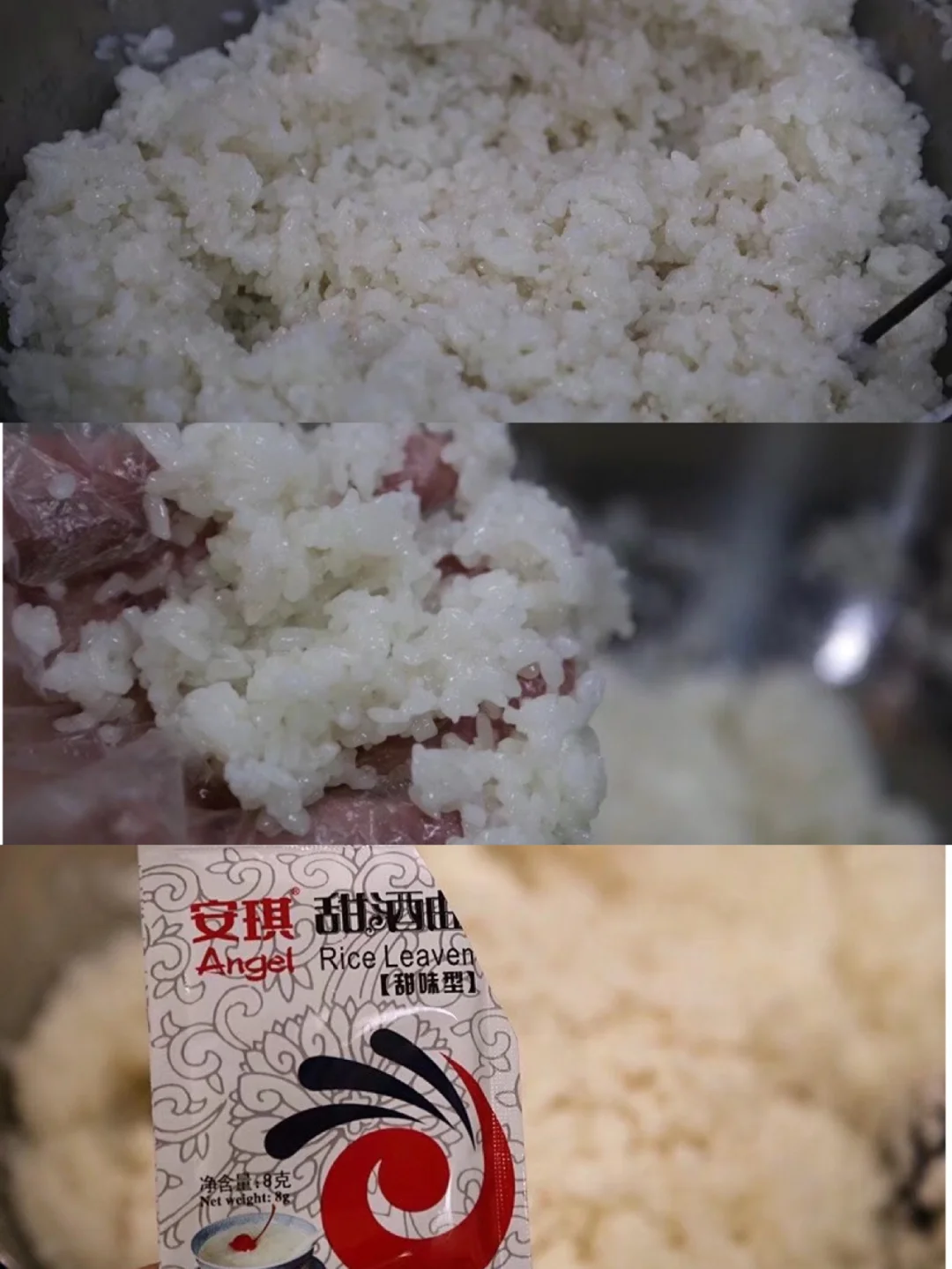 10.加入安琪甜酒曲,我是按它后面的说明来用的 每包可做2-2.5kg左右 所以放了大概4g左右 你们根据自己买的是实际情况来 个人觉得放的太多会腻
