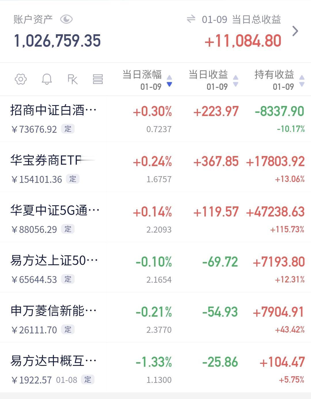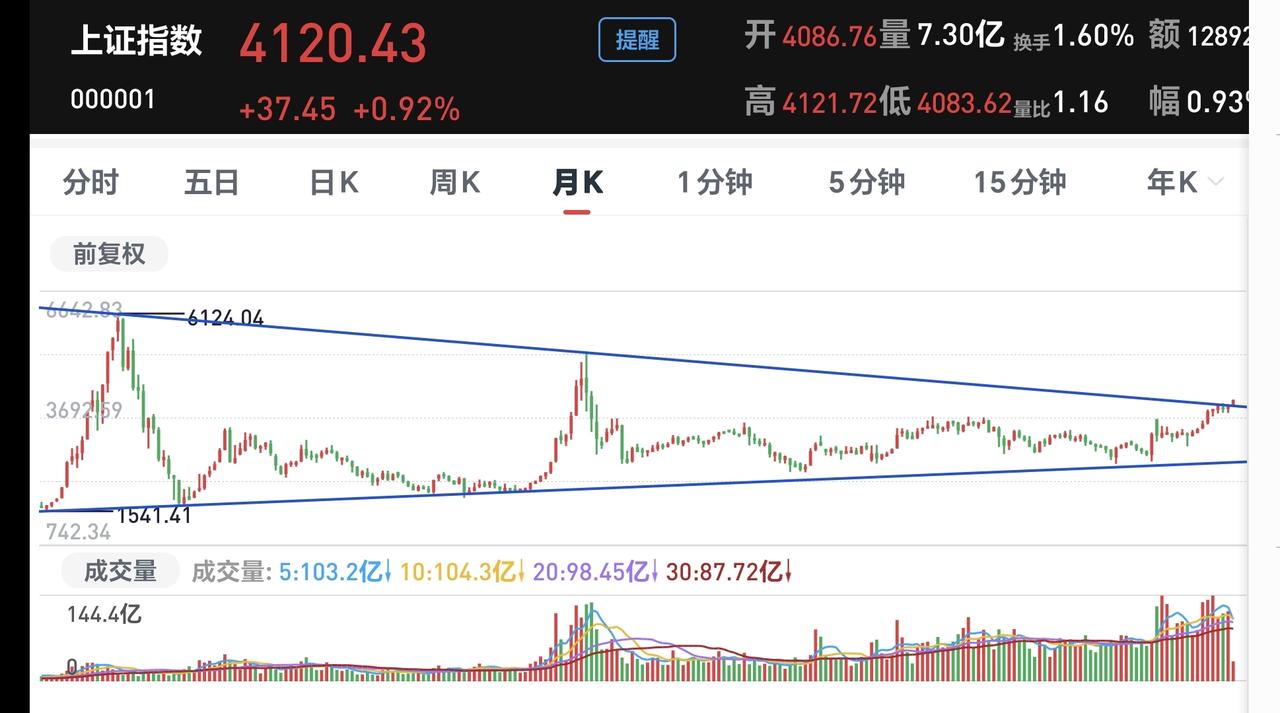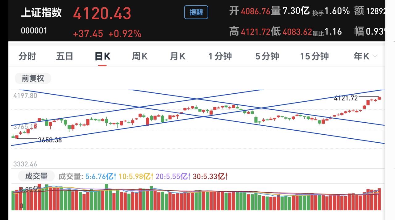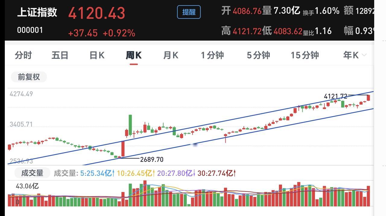 基金:现在能不能满仓进场 上证指数16连阳,站上了4100点上方,这次十几年以来,第一次收盘点位在4100点上方,我们来看一下上证指数的情况。 看下面的截图2,这是上证指数日K线图,从图中可以看出,我画了两条倾斜向下的斜线,这是上证指数日线级别短期下跌通道,前段时间上涨突破了这个下跌通道的上轨,也就是说,上证指数日线级别短期下跌趋势已经被改变。 看下面的截图3,这是上证指数周K线图,从图中可以看出,我画了两条倾斜向上的斜线,这是上证指数周线级别上涨通道,现在的位置处于这个上涨通道内,也就是说,上证指数周线级别处于上涨趋势中,上证指数大方向向上。 看下面的截图4,这是上证指数月K线图,从图中可以看出,我画了一条倾斜向下的斜线,这是长期以来压制上证指数上涨的反压线,本月的上涨已经突破了这条反压线,是不是能够突破还需要月底的时候确认,如果本月最后一个交易日是突破状态,才表明是突破,但是,确认有效突破,还需要下2个月份继续观察。 上证指数日线级别短期下跌趋势已经被改变,周线级别处于上涨趋势中,月线级别现在是突破反压线构成中,这三个时间周期都表明,上证指数现在没有大问题,只是要防范一下16连阳或者是17连阳之后的震荡调整,连阳的天数越多,后面的调整速度会越快,但再怎么调整也不会是大幅度下跌。 今年有了五个交易日,今年以来的收益是55046元,收益率为5.65%,你细想一下,这样的上涨会不会是常态,如果一直都是这样的表现,我今年即使一半的仓位,全年的收益也会是在200万以上,你觉得可能吗,反正我觉得可能性是没有,连微乎其微的可能性都没有。 很多人都在为这段时间的收益高兴,这段时间的收益其实就是浮盈,如果你不能在下次调整来临之前落袋为安,现在的浮盈,到时候就是浮云,一切都会烟消云散。 玩基金是长期的事情,不要为一时的盈亏而影响自己的情绪,盈利的时候是给你挣钱的机会,亏损的时候是给你捞筹码的机会,但许多人的思维方式是相反,看到自己盈利了,在到处问能不能加仓,看到自己亏损了,在到处问要不要割肉,这样的思维方式是不对的。 我现在的基金持有是100万左右,今年以来的收益率是5%左右,如果保持现在的仓位,调整幅度在5%以上,我就会进入亏损状态,如果我现在补成满仓,后面只要调整幅度在2.5%以上,我就会进入亏损状态,你觉得我现在要不要补仓进场变成满仓,你想想你自己现在能不能补偿现场变成满仓。 我每天都会分享我的观点,我的观点只代表我个人的看法,不能作为你操作的依据,据此操作后果自负。