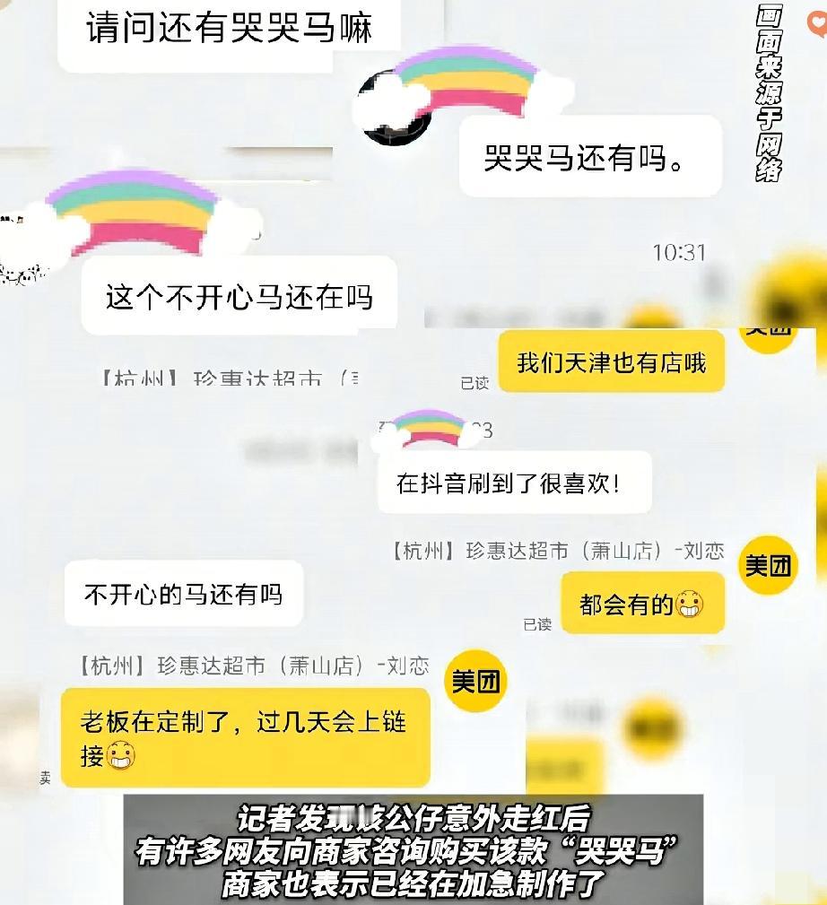 义乌“哭哭马”爆火绝非意外! 工人缝反嘴巴的失误,竟让它成了打工人的“本命搭子”,这背后藏着当代人最真实的情绪渴望。 本该销毁的“残次品”,凭着耷拉的嘴角、委屈的模样,精准戳中了打拼一年的普通人。 我们总被要求强装笑脸,可“哭哭马”的不完美,恰恰给了情绪一个出口——它像极了加班到崩溃的自己,也像努力却没赚到钱的无奈模样。 它的走红,证明人们早已不满足于虚假的正能量,更需要能共情的真实。 25元的低价,软乎乎的触感,捏一下还能“呜呜”哭,这份治愈感让它超越了玩具本身。 原来最打动人的从不是完美,而是被看见、被理解的温柔。 你是不是也想把这只“情绪搭子”带回家,给疲惫的自己一个慰藉?