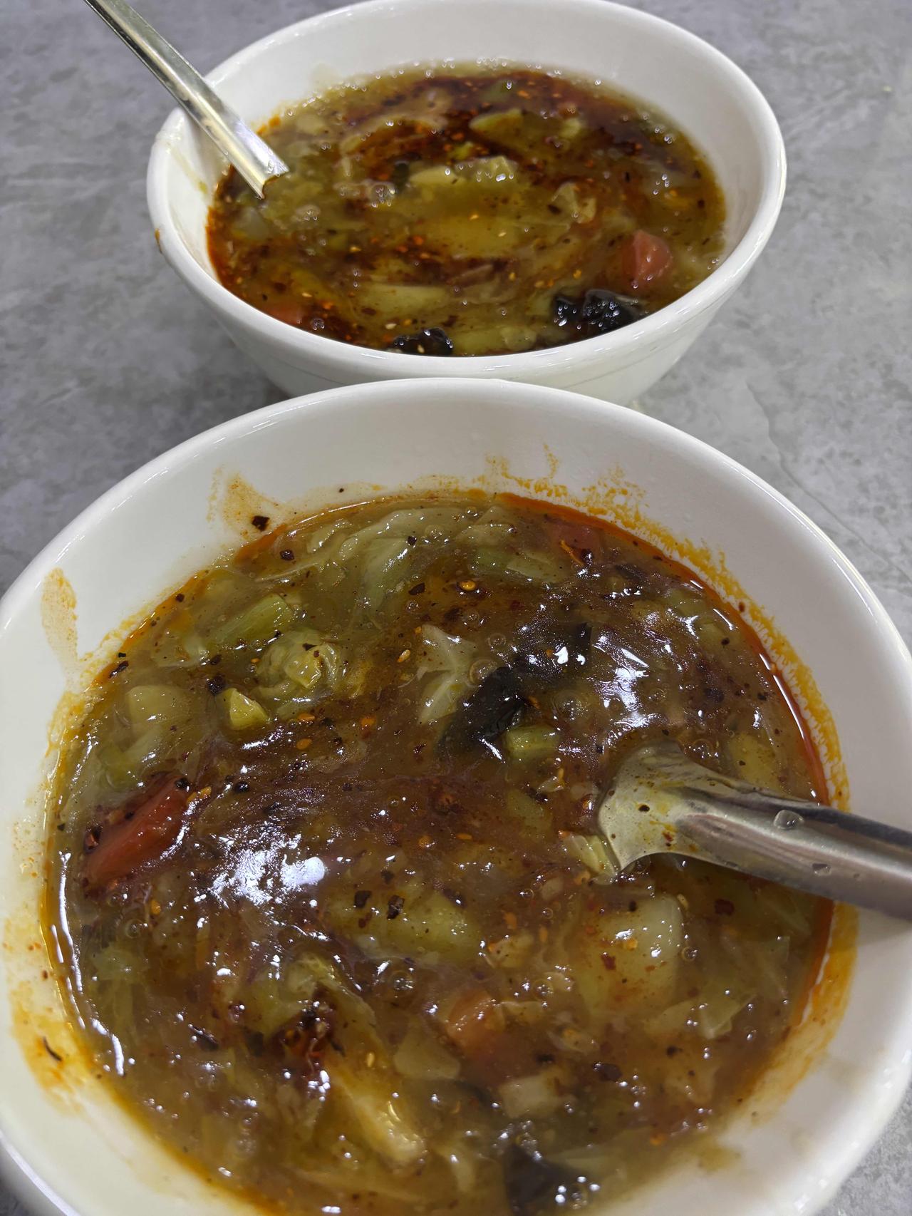 咸阳西站这家胡辣汤羊肉泡馍馆,门头朴素,桌椅也都是简单的实木款,却总能在饭点坐得满满当当。店里的吃食不算繁杂,却样样戳中老陕人的味蕾:喷香浓稠的胡辣汤是早餐的标配,配上酥脆的油饼,一口下去浑身暖乎乎;顺带着还做地道的羊肉泡、手工水饺和现烙的羊肉饼,每一样都是实打实的家常味。 若是饭点来填饱肚子,一碗胡辣汤或者一份羊肉泡,配个饼子就能吃得舒坦又满足;要是傍晚约上三五老友小聚,那就点上几样清爽小菜——凉拌黄瓜、酱牛肉、花生米,再开上一瓶二锅头,几人围坐在一起,边喝边聊家长里短。酒过三巡,最后一人再来一碗滚烫鲜香的羊肉泡馍,馍块吸饱了肉汤,配上软烂的羊肉,暖胃又暖心。 这家胡辣汤羊肉泡馍馆,也许没有精致的摆盘,没有新潮的菜品,算不上什么高大上的馆子,但就是这份热腾腾、实打实的烟火气,留住了一波又一波回头客,成为了老小区旁最熨帖人心的味道据点。