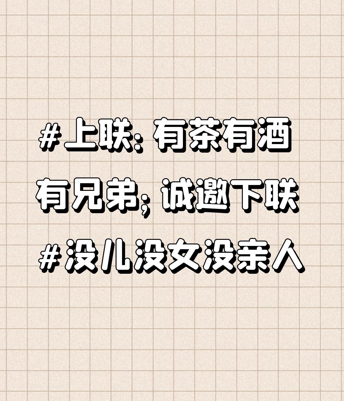 上联:有茶有酒有兄弟;诚邀下联没儿没女没亲人