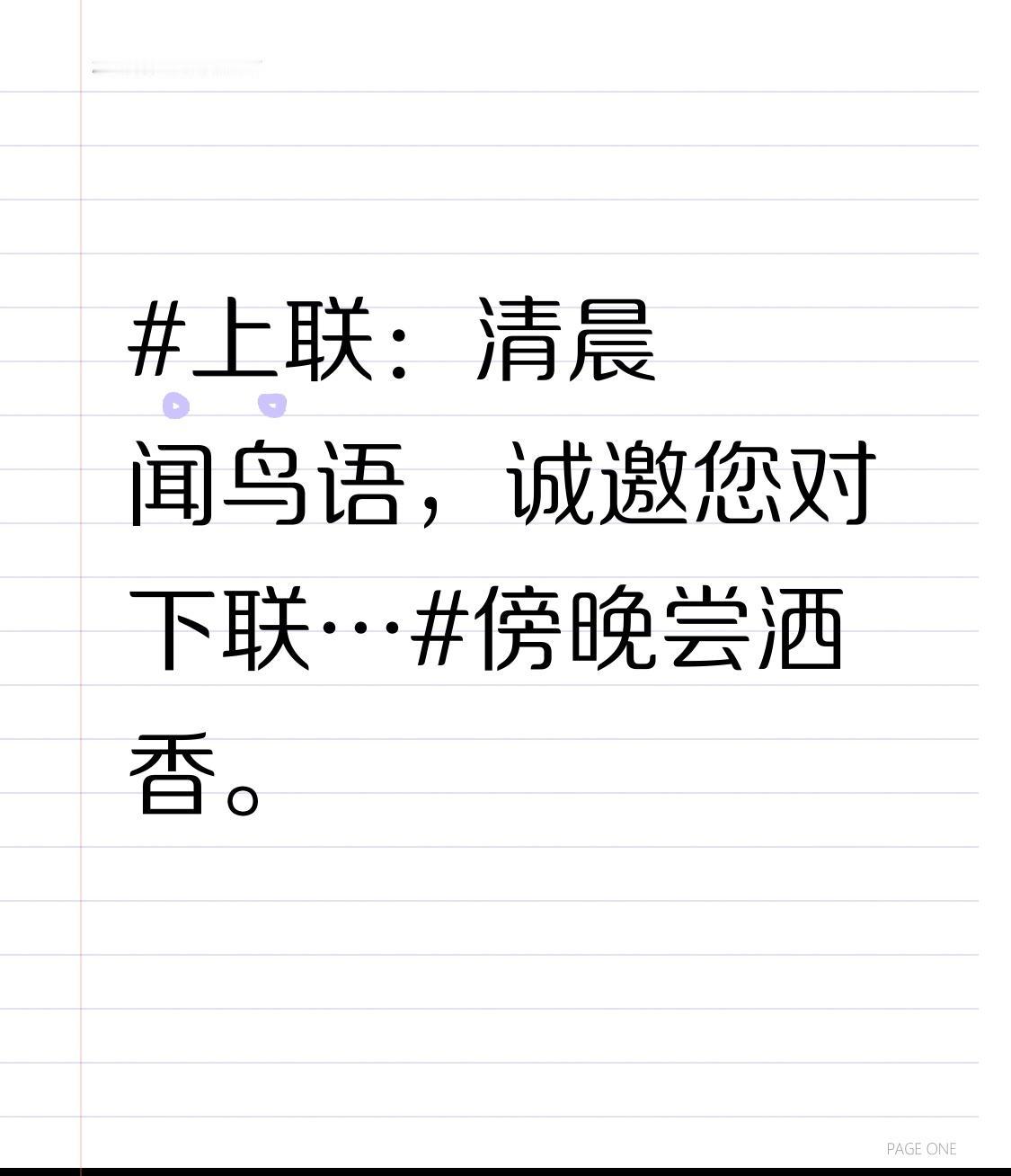 上联:清晨闻鸟语,诚邀您对下联…傍晚尝洒香。