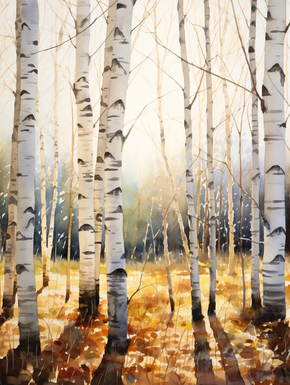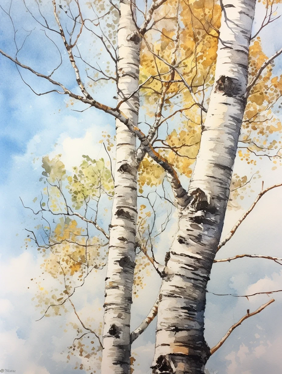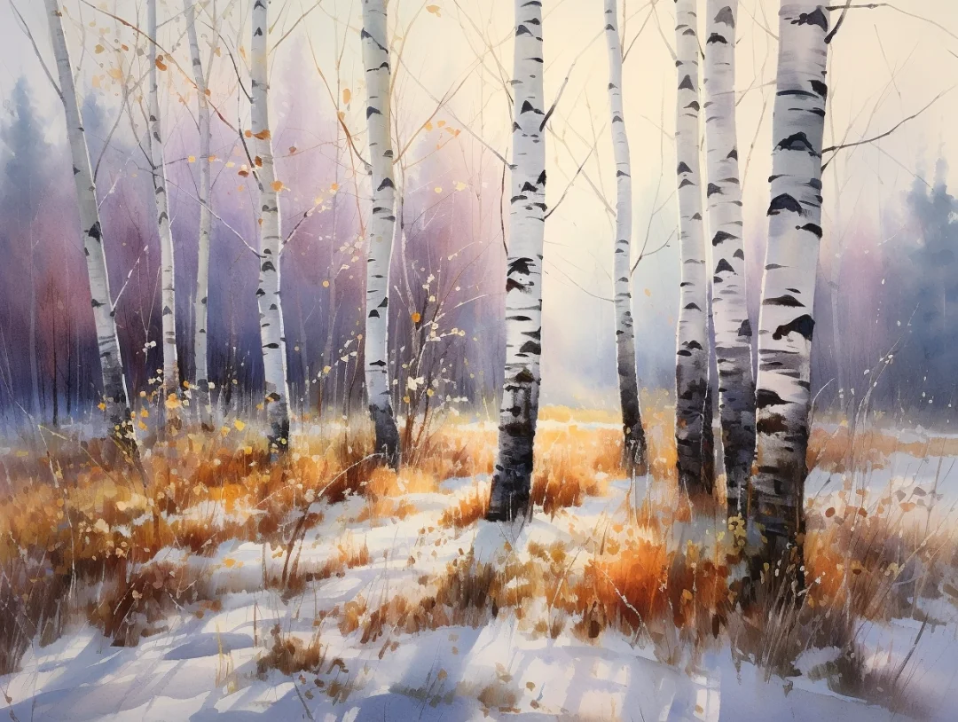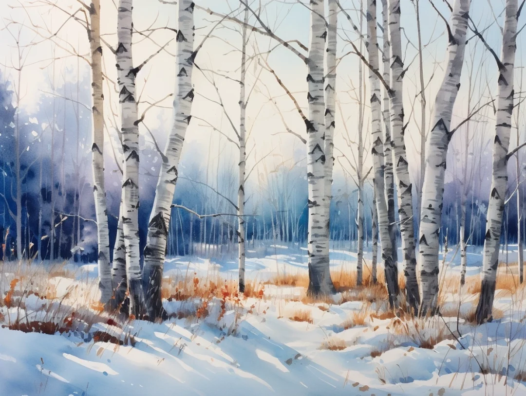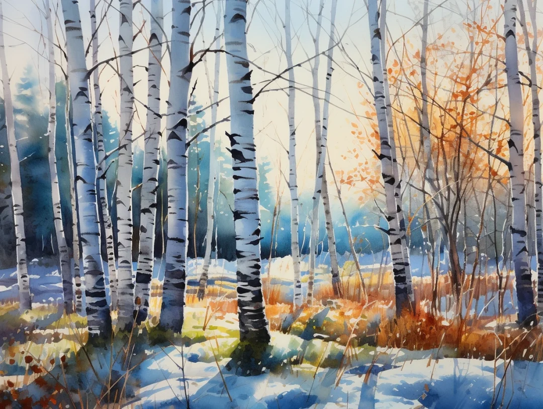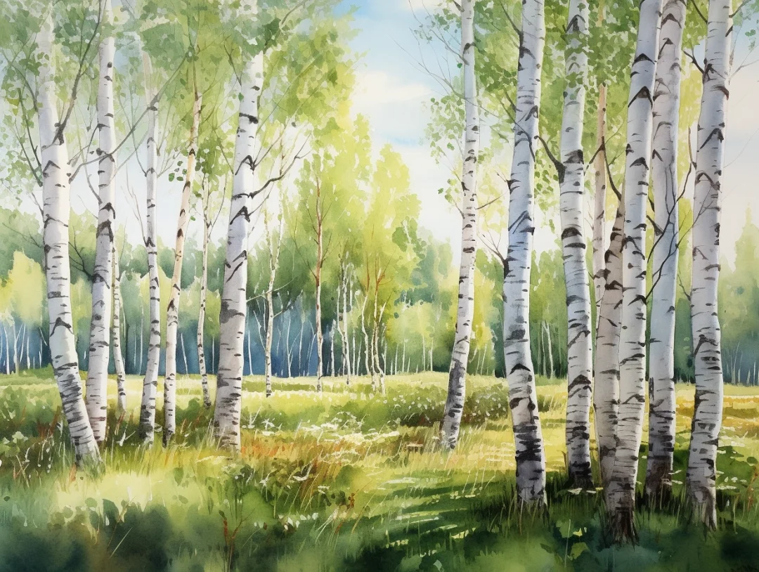 AI水彩:白桦树
