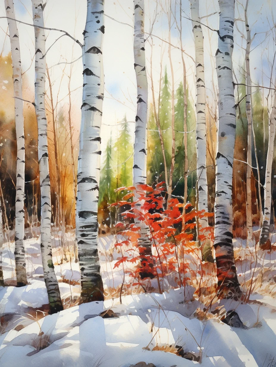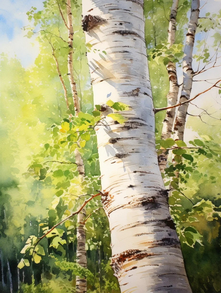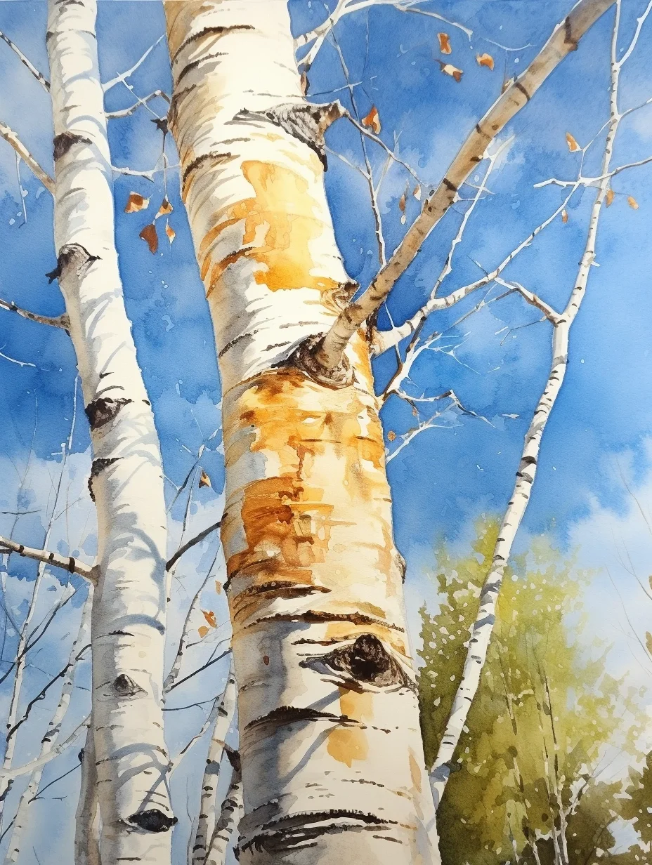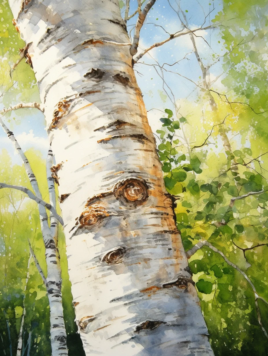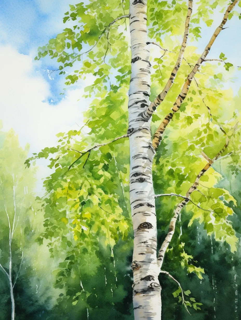 AI水彩:白桦树