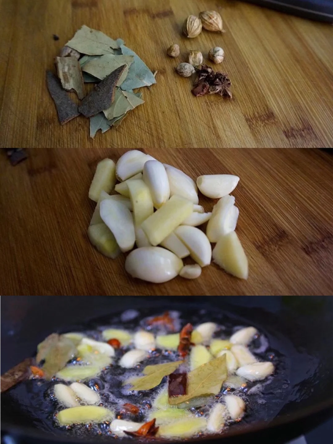6.准备一些家常必备的香料:八角,香叶,豆蔻7.大蒜一个剥皮,生姜去皮切块