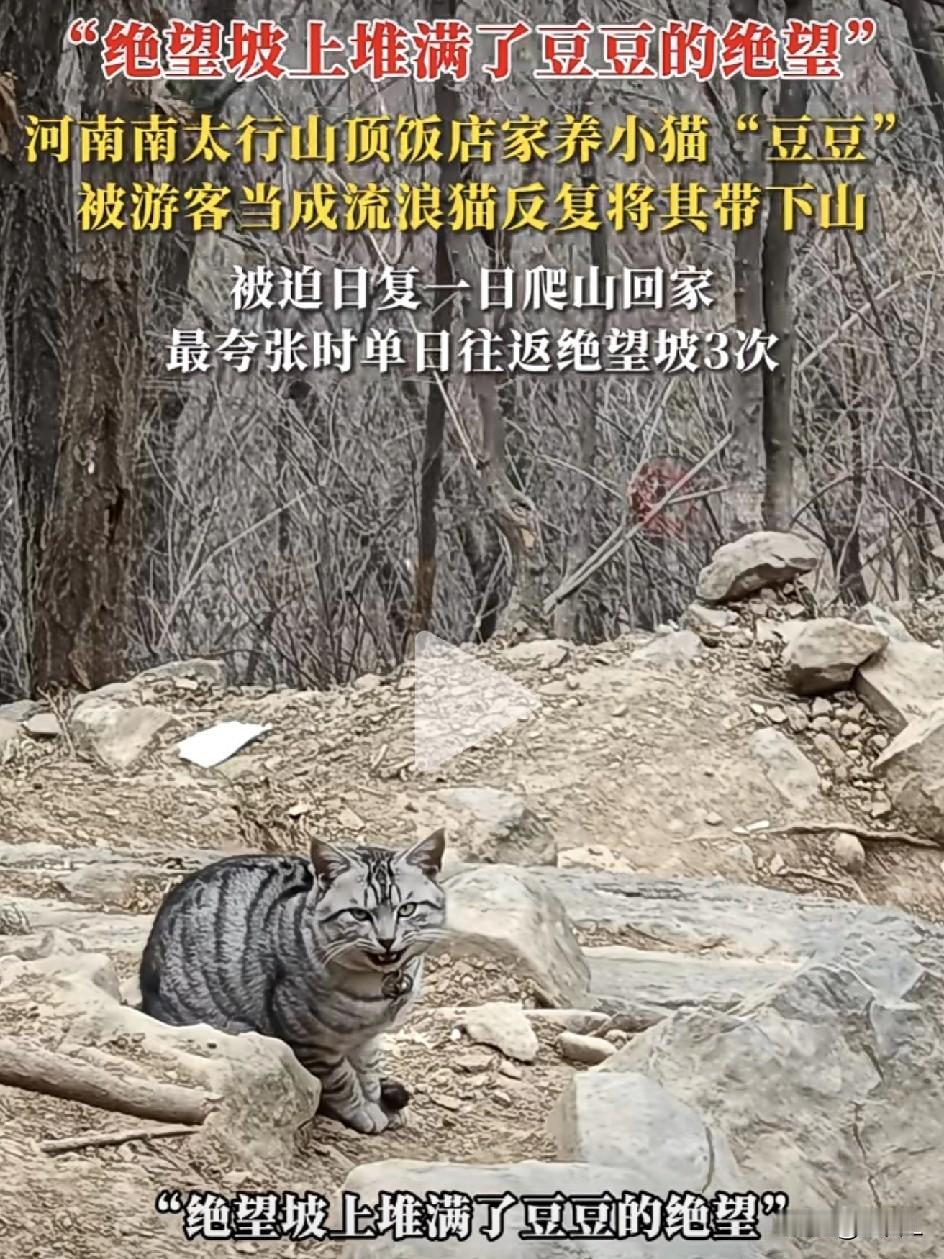 太行山上的“社畜”猫:最夸张时,日爬绝望坡五次,累到生无可恋!绝望坡上堆满了豆豆的绝望! 说出来你可能不信,连猫都有KPI了,还是日爬绝望坡五次那种! 河南南太行有只“打工猫”叫豆豆,它本是绝望坡山顶饭店的正式员工,日常任务就是在山路上溜达卖萌、巡视领地。 可因为它天生“亲民脸”、见人就蹭,游客一看:“哎呀小可怜,这一定是流浪猫困在山上了!”二话不说,抱起就走,一路“救”到山脚下。 结果就是——豆豆的回家路,成了“绝望坡”每日铁人三项。 最卷的一天,它被不同游客连续“救”下去五次,爬回来五次,最后瘫在店里眼神放空:“真的栓Q,人类的好心我真承受不起……” 主人郭女士哭笑不得,终于想出大招:给豆豆定制工牌!红绳挂脖,上面大字写明:“我家在山顶饭店,请不要带我下山!”外加联系电话,堪称“防救助版救命符”。 挂牌上岗后,豆豆的“误救率”终于下降,总算能安心摸鱼(巡逻)了。不过据说,至今仍有眼神不好的游客,一看它这么乖就顺手“解救”…… 网友辣评: “猫:我凭本事上的山,人类非得给我安排下山体验卡!” “这是全网第一只因为性格好被迫健身的猫……” “建议下次挂牌写:‘已签劳动合同,谢绝救援,我想上班!’” 所以下次爬山看见带牌营业的猫,别急着救——它可能正忙着“通勤”呢! 素材来源:潇湘晨报,侵联删!
